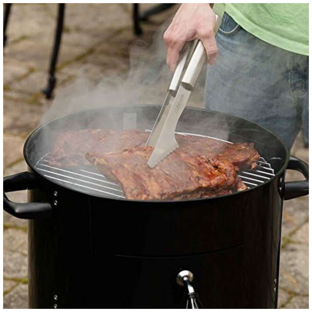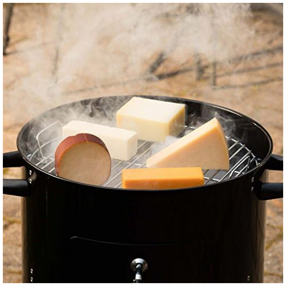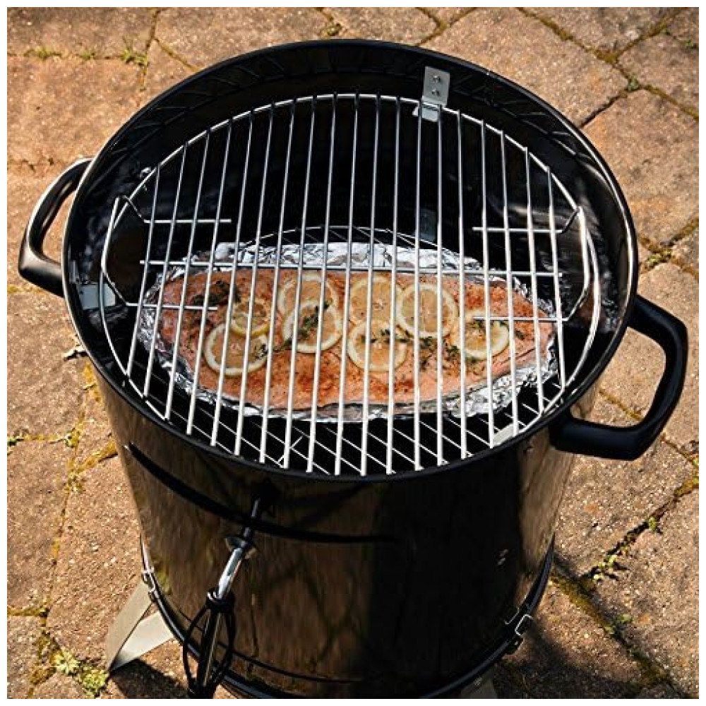 Dois racks de aço inoxidável de 18 fornecem 510 polegadas quadradas de espaço para cozinhar