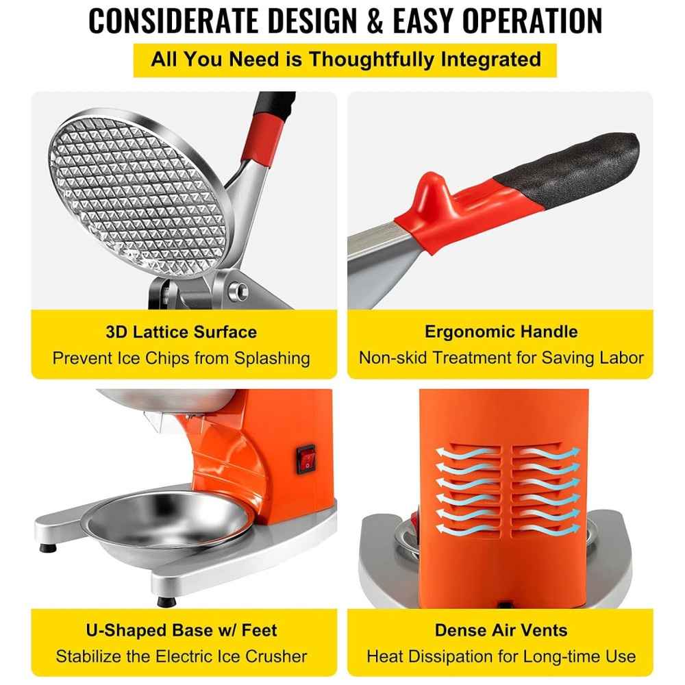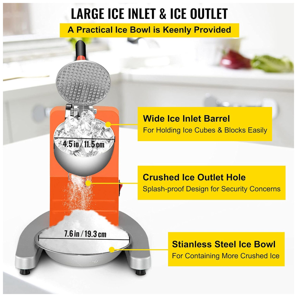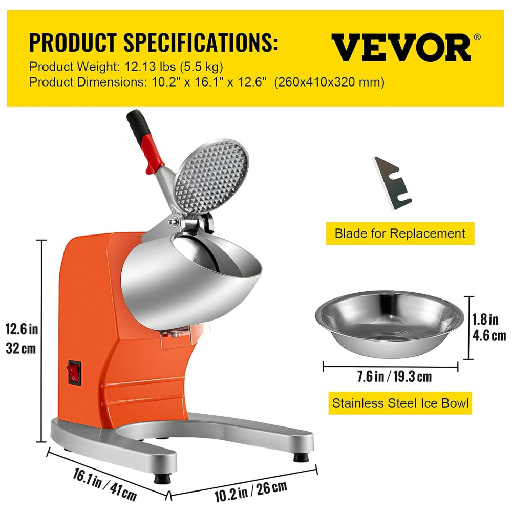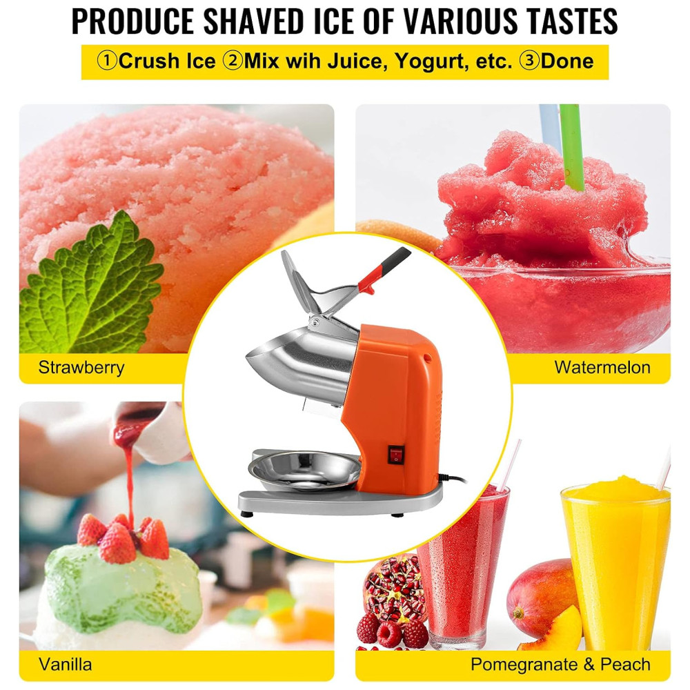 VEVOR Máquina de Raspadinha Industrial Aço Inoxidável 95 kg h 110V 300W Laranja