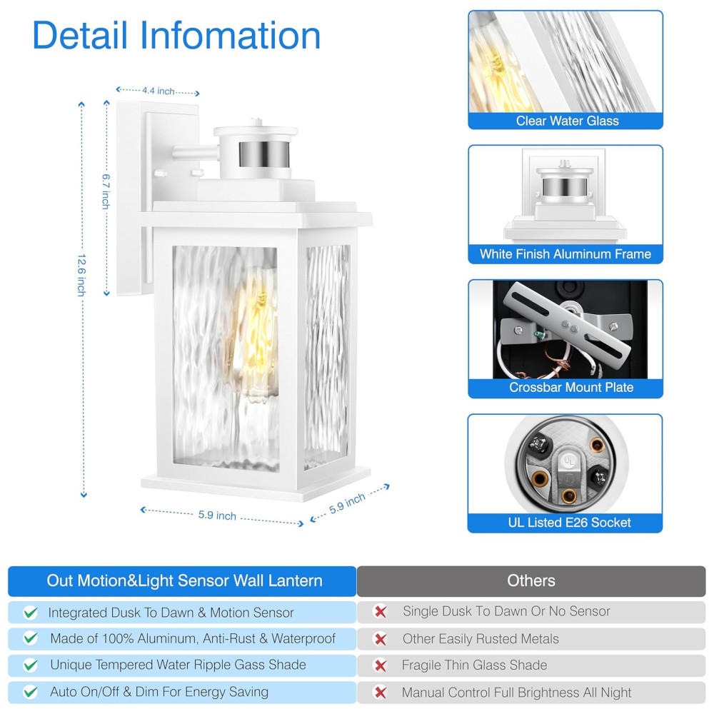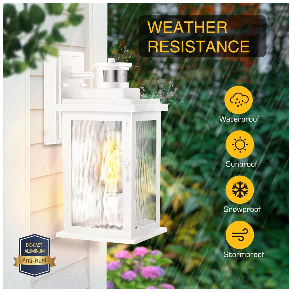 Vianis Arandela Luminária Clássica Externa de Parede à prova dágua com Sensor, Base E26, 1 Unidade, Branca