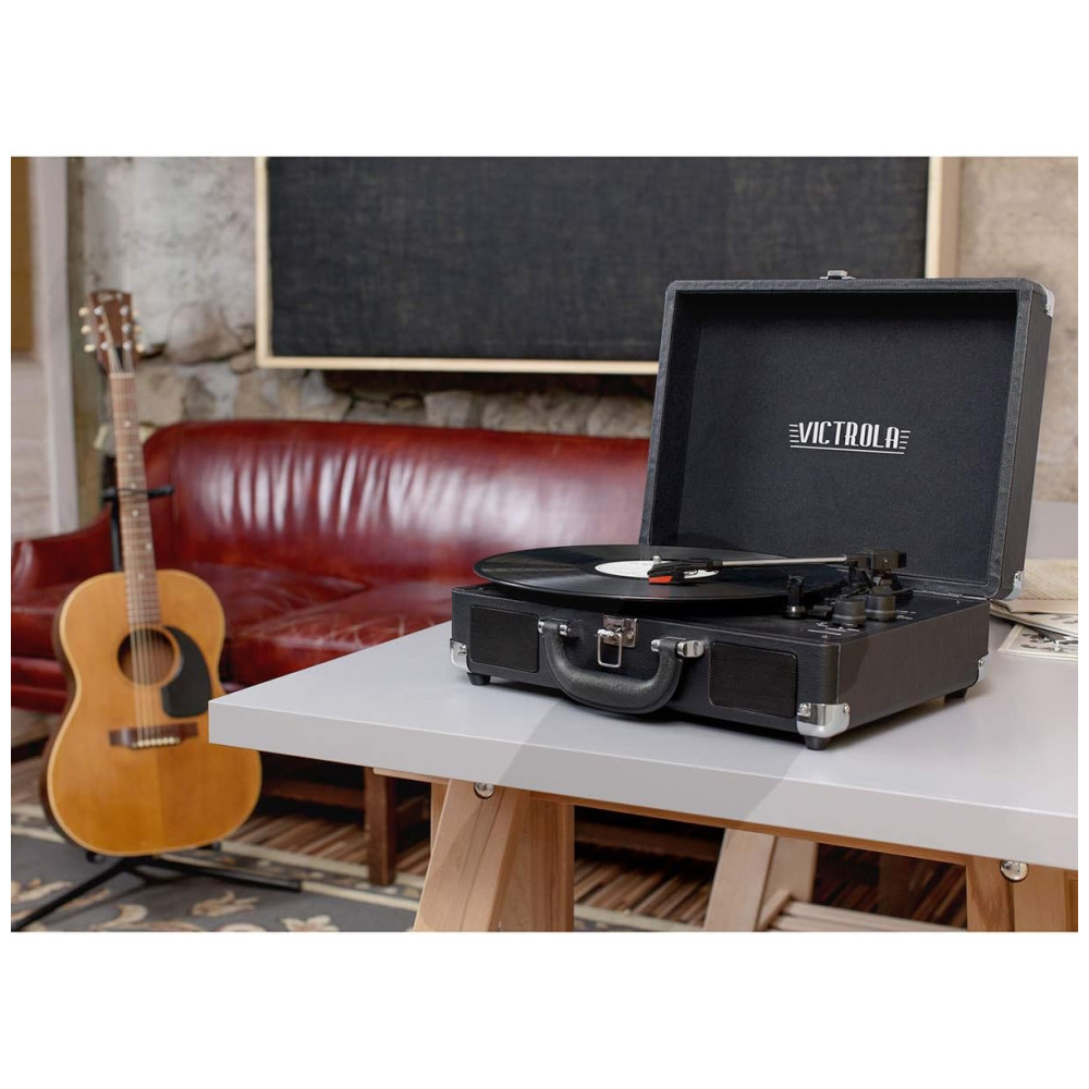 Vintage Toca Discos 3 Velocidades Bluetooth com Alto Falantes Mala Portátil VICTROLA VSC 550BT BK Preto