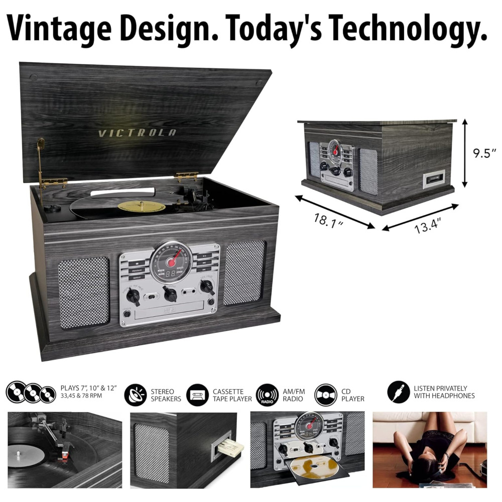 Vitrola Toca Discos 1 Velocidade sem fio com USB e Alto Falante 45 RPM VICTROLA VTA 200B GH Preto
