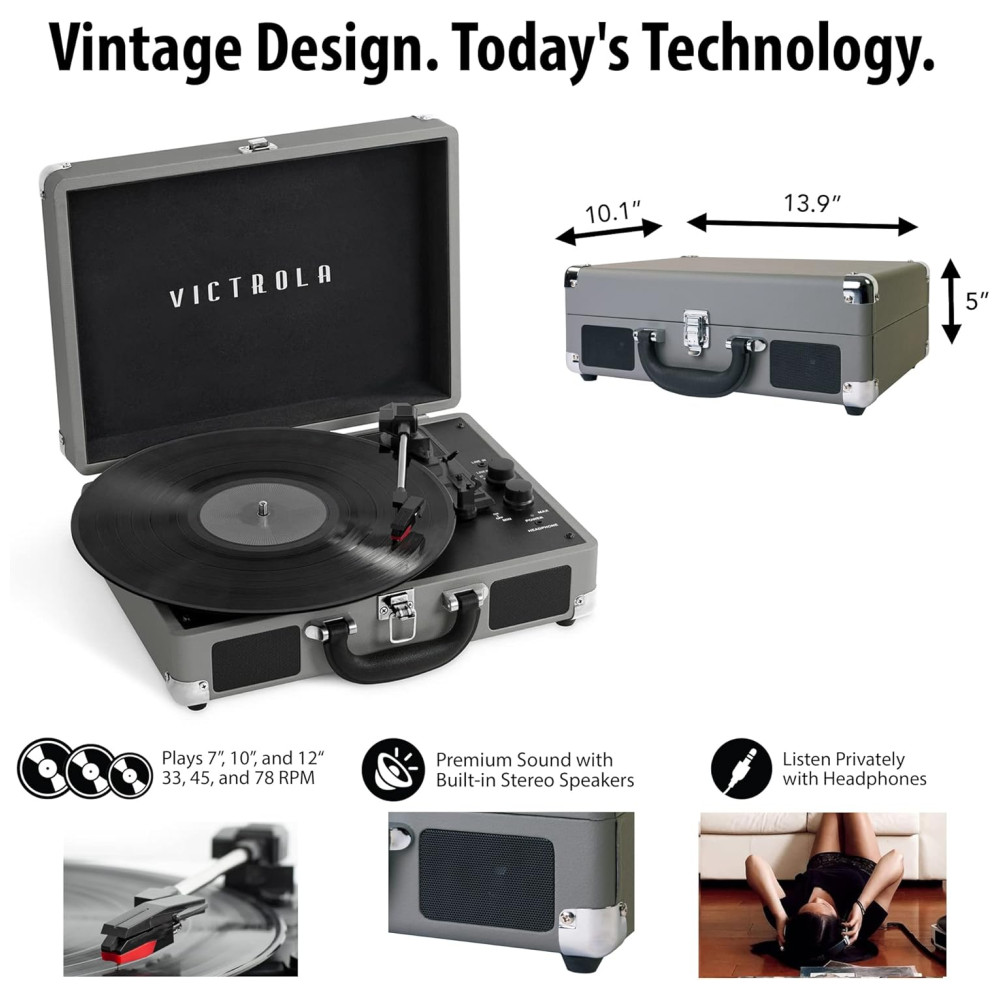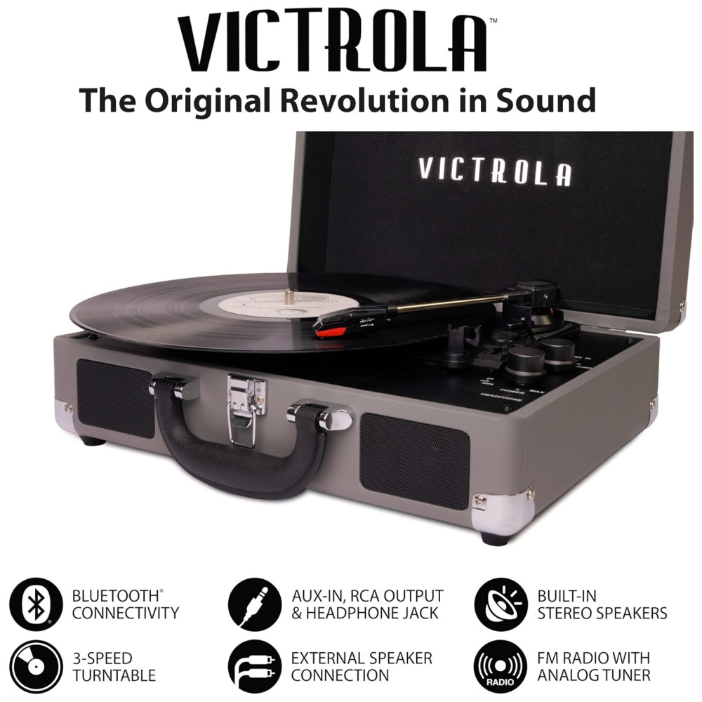 Vitrola Toca Discos 3 Velocidades com Bluetooth 45 RPM 110v VICTROLA VSC 550BT NWG SDF Cinza