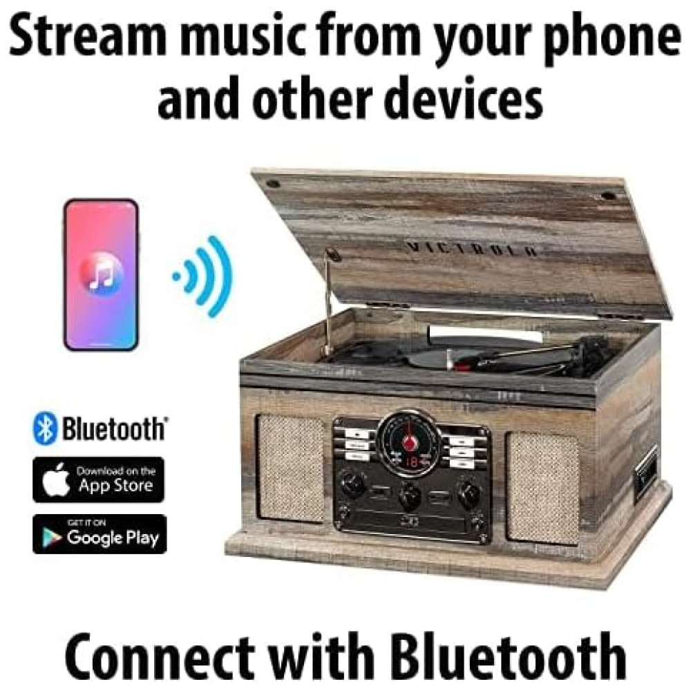 CENTRO DE ENTRETENIMENTO 6 em 1 Com looks vintage por fora e recursos modernos por dentro, ouça do seu jeito discos de vinil, CDs, cassetes, rádio AM , FM ou streaming de música de seu smartphone via Bluetooth ou 3, Aux , fone de ouvido