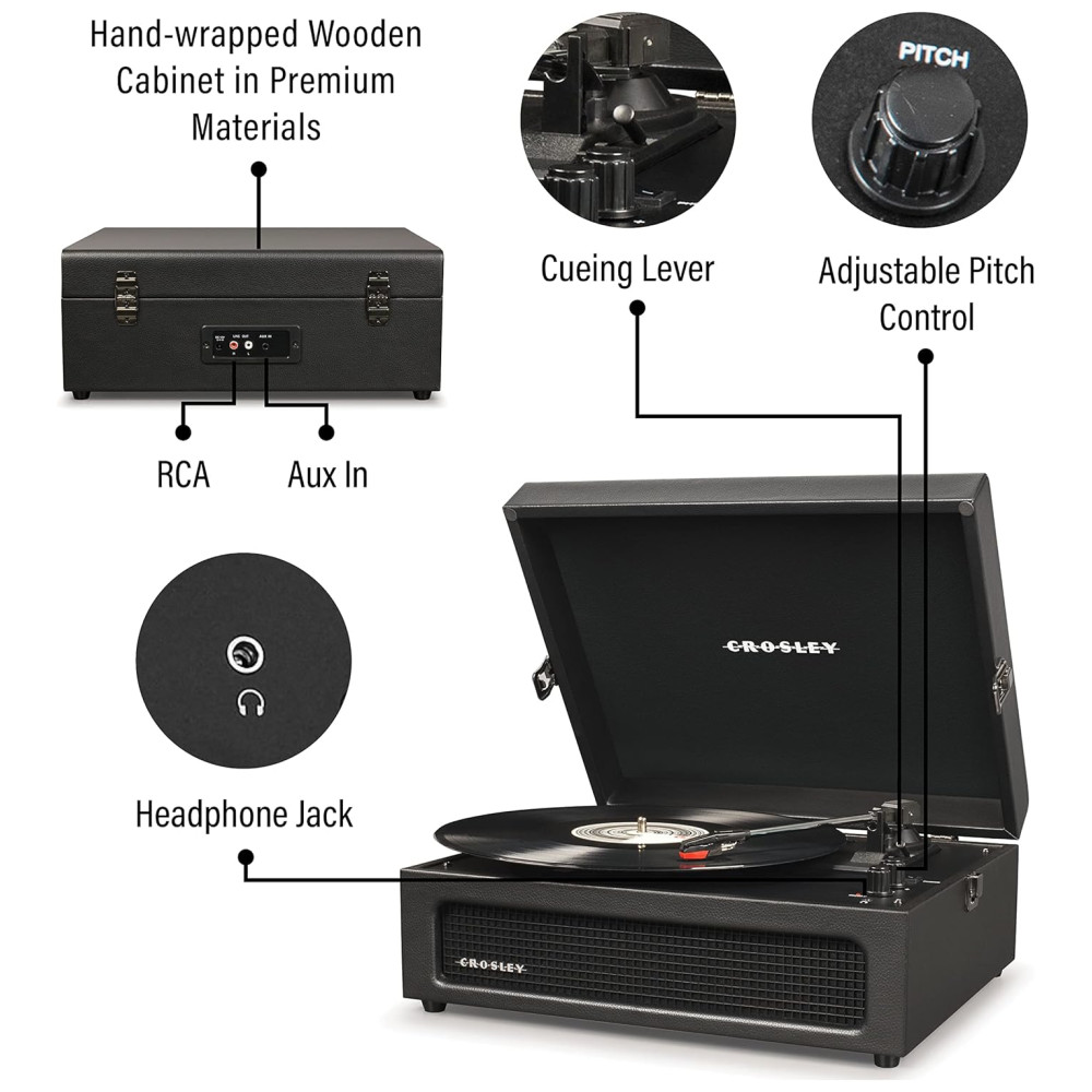 Vitrola Toca Discos 3 Velocidades com USB 45 RPM 110v CROSLEY CR8017B BK Preto