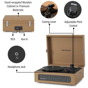 Vitrola Toca Discos 3 Velocidades com USB 45 RPM 110v CROSLEY CR8017B TA Marrom Claro