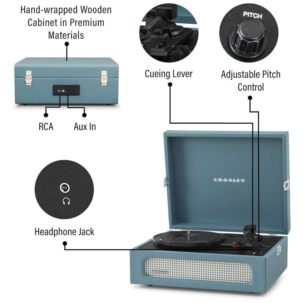 Vitrola Toca Discos 3 Velocidades com USB 45 RPM 110v CROSLEY CR8017B WB Azul