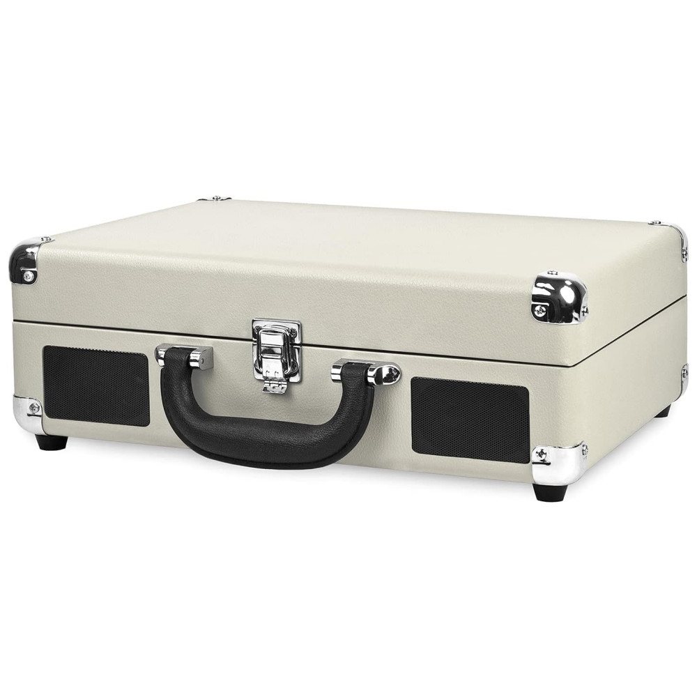 TOCA DISCO DE TRÊS VELOCIDADES ACIONADA POR CORREIA Este toca discos de mala de 3 velocidades 33 1, 3, 45, 78 rpm apresenta QUALIDADE DE SOM PREMIUM ATUALIZADA e fica em pés de isolamento de som que evitam vibração. É perfeito para sua sala de estar, quarto ou escritório.