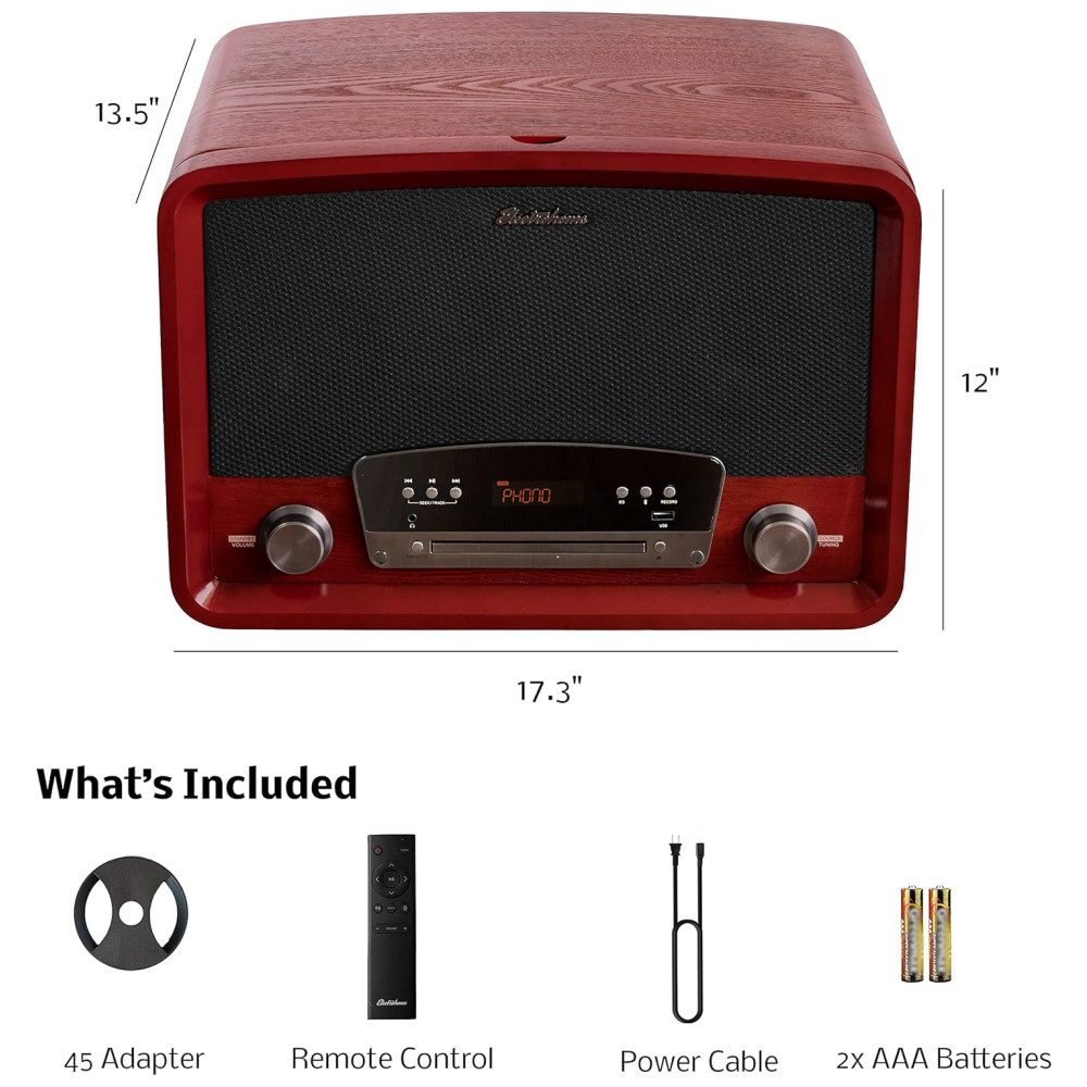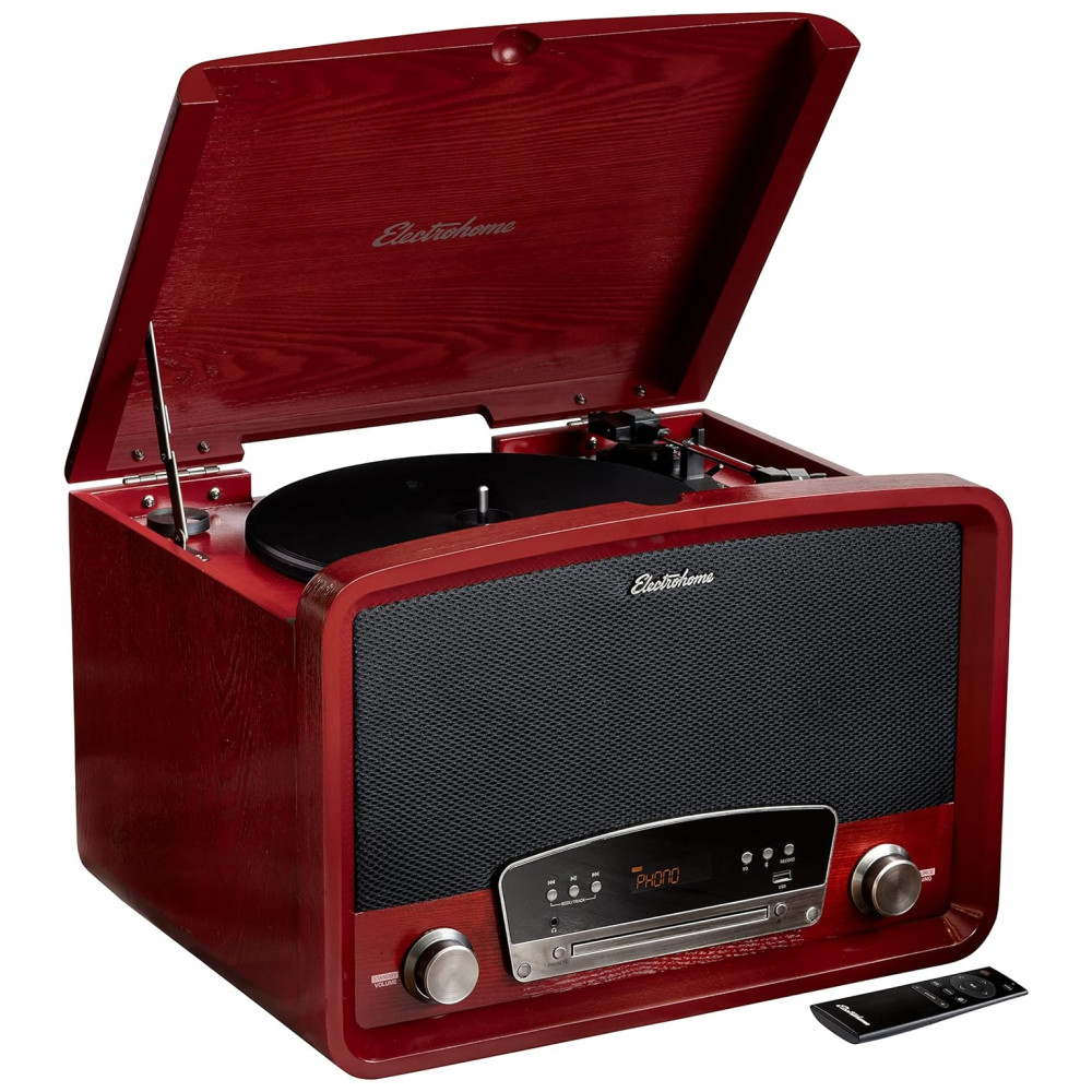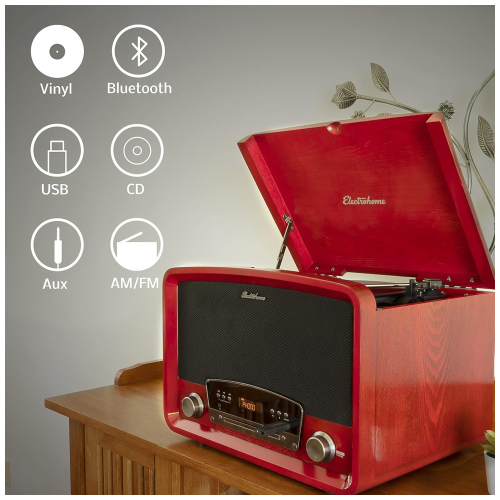 Vitrola Toca Discos 3 Velocidades sem fio com USB e Controle Remoto 33 RPM ELECTROHOME RR75C Vermelho