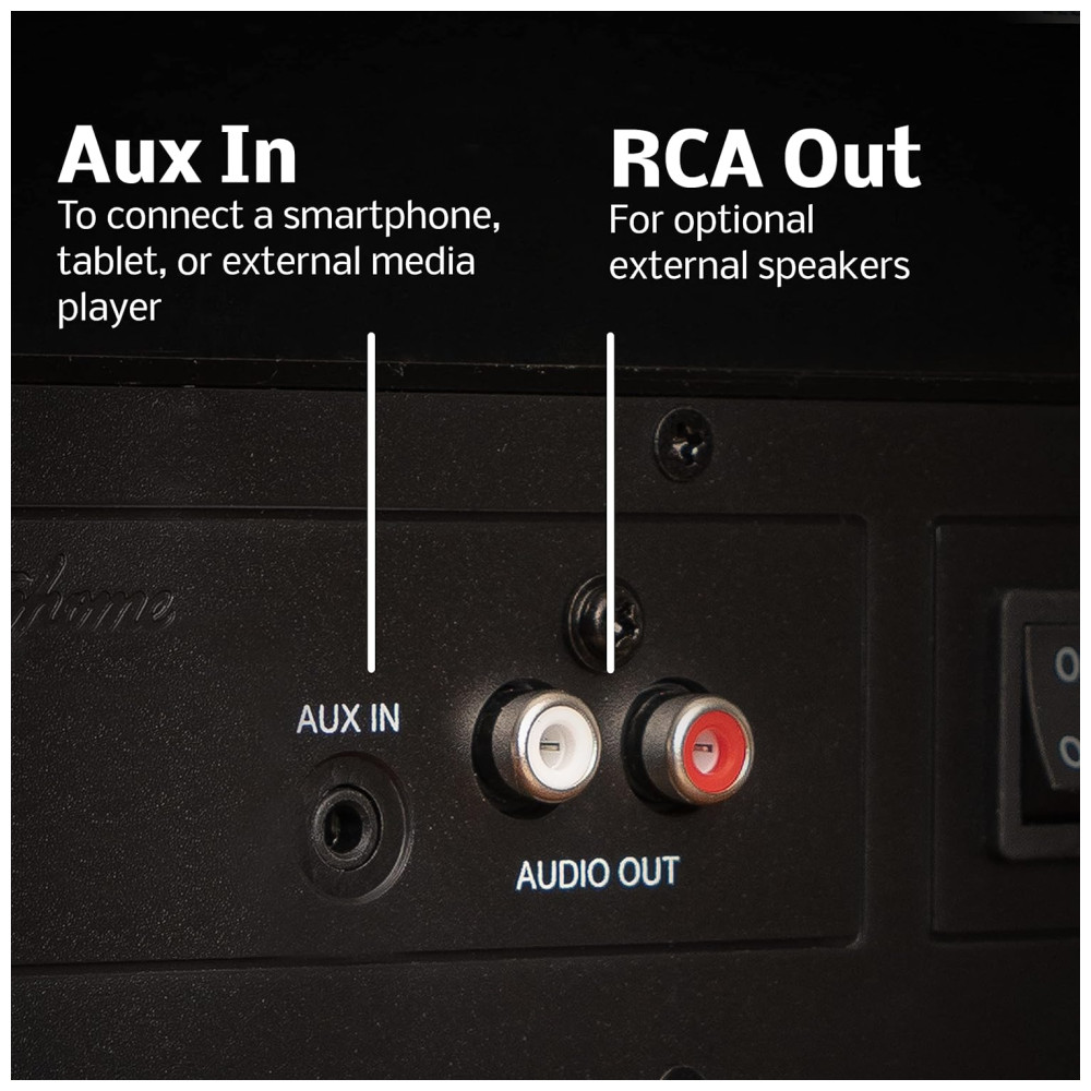 SISTEMA 7 em 1 PARA REPRODUZIR SUA COLEÇÃO INTEIRA DE MÚSICA Reproduz todas as suas músicas favoritas, desde discos de vinil até streaming de música digital por meio de toca discos, Bluetooth, entrada auxiliar, rádio AM , FM, CD player e USB