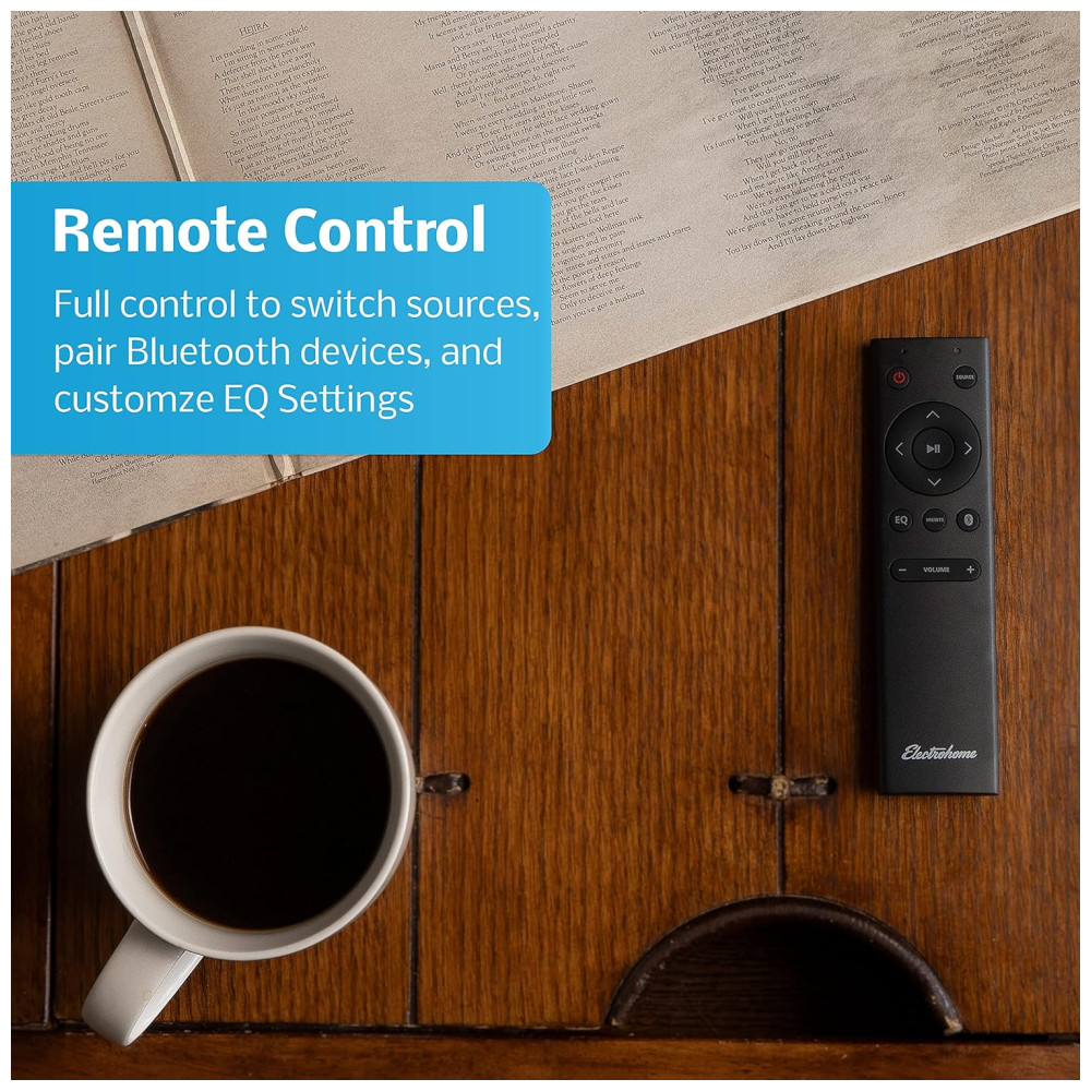 ARMÁRIO DE MADEIRA ARTIFICIADO À MÃO E ACUSTICAMENTE AFINADO Apoiado pelos 100 anos de desenvolvimento de produtos de áudio de alta fidelidade da Electrohome, o impressionante design retro moderno adiciona um toque vintage ao mesmo tempo em que oferece o som quente de um gabinete de madeira
