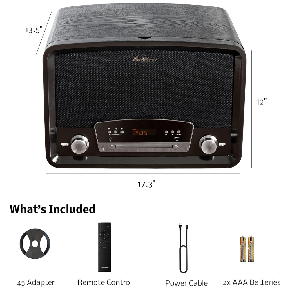 Vitrola Toca Discos 3 Velocidades sem fio com USB e Controle Remoto 45 RPM ELECTROHOME RR75B Preto