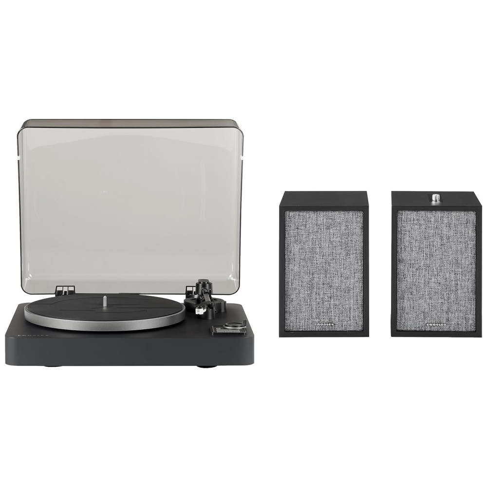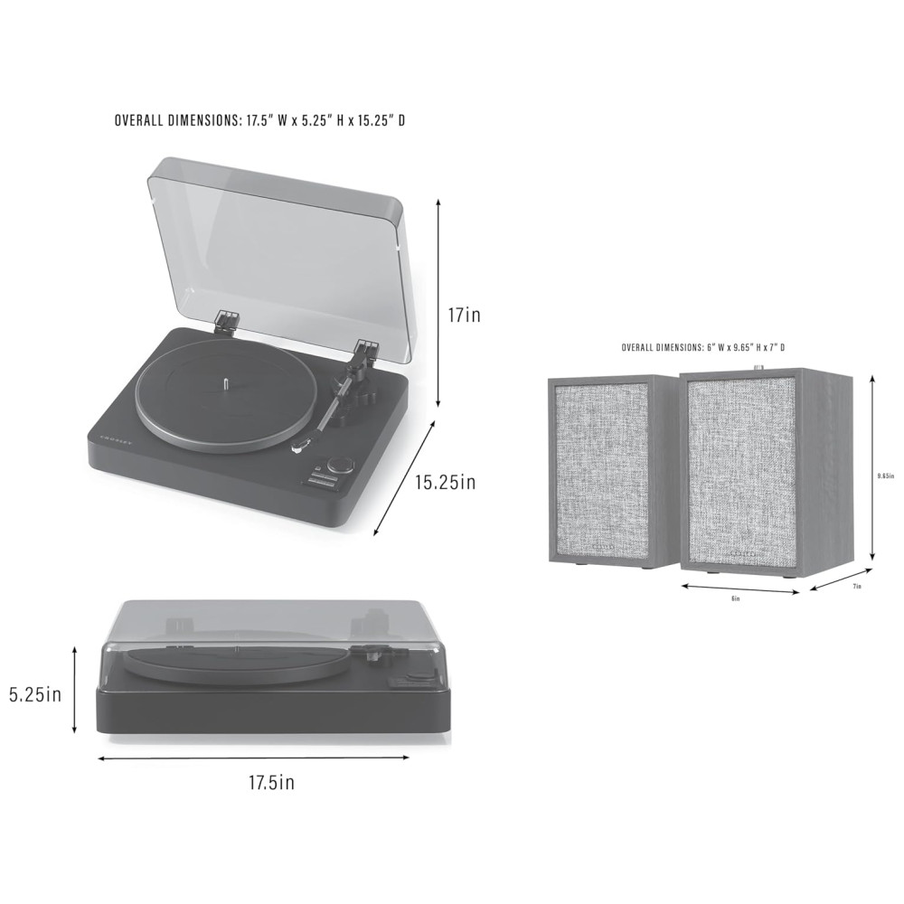 Vitrola Toca discos de 2 velocidades Crosley. Ajuste facilmente entre discos de 33 e 45 rpm. Com componentes de alta qualidade, este toca discos oferece um som excepcional. Possui um braço de alumínio totalmente automático com alavanca de sinalização e controle de parada automática para que você possa abaixar a agulha em seu disco favorito com confiança. A capa protetora transparente protege o toca discos mesmo quando em uso. Este toca discos de vinil também possui um cartucho de ímã móvel AudioTechnica pré montado para qualidade de som premium. O motor síncrono de baixa vibração e os pés de amortecimento de ressonância eliminam a interferência para uma reprodução suave. Com opções de avanço rápido e retrocesso, você pode assumir o controle total de sua experiência auditiva. Os alto falantes amplificados S200 incluídos apresentam cada um woofer de 4 polegadas junto com um tweeter de cúpula suave, acionados por um amplificador de 50 watts.