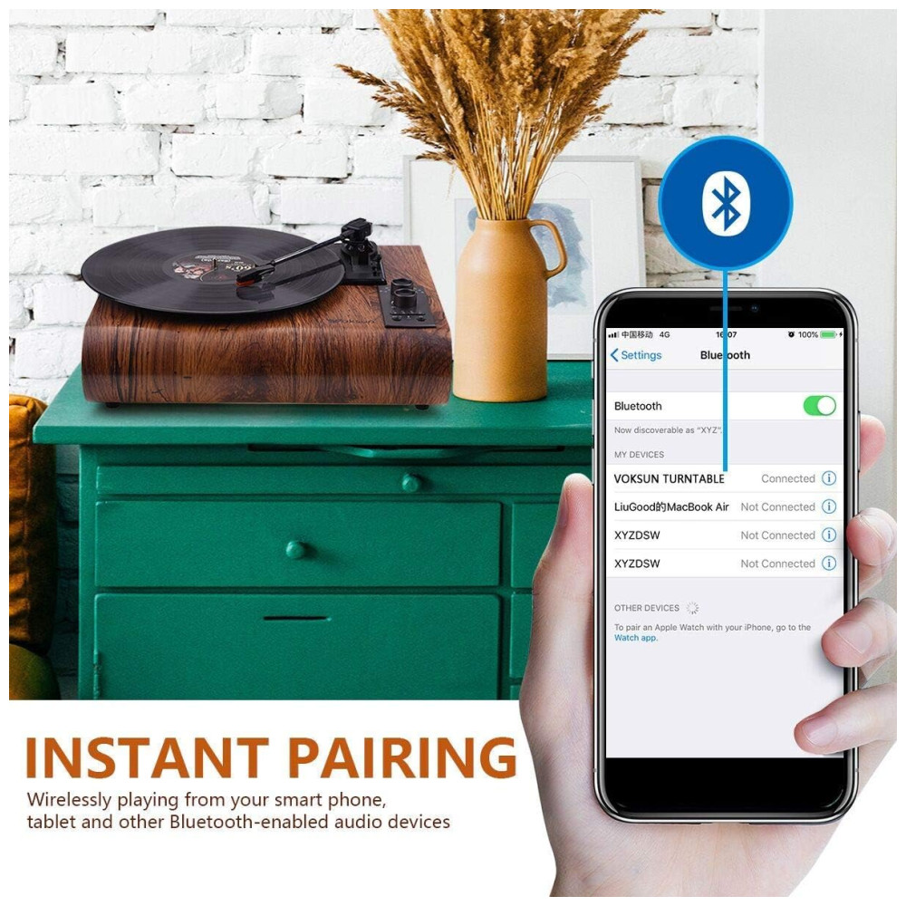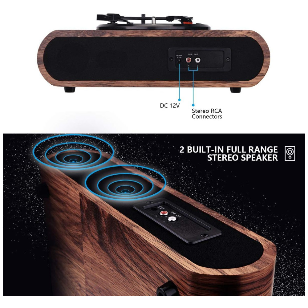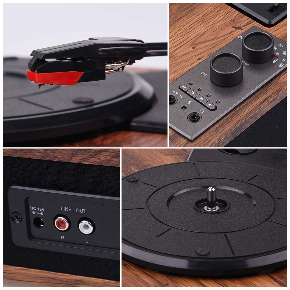 A função de recepção de Bluetooth transforma seu toca discos em um alto falante sem fio AM , FM e Aux in e RCA out e fone de ouvido atendem às suas várias necessidades de streaming