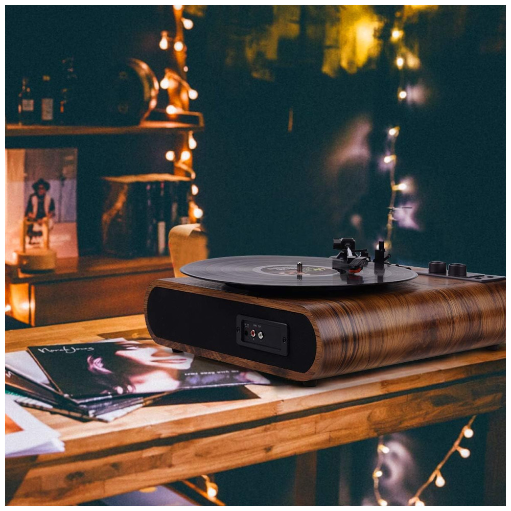 All in one toca discos a 3 velocidades selecionáveis para discos de vinil de 17 x 25 x com adaptador de 45 RPM incluído reprodutor de vitrola de nível básico perfeito