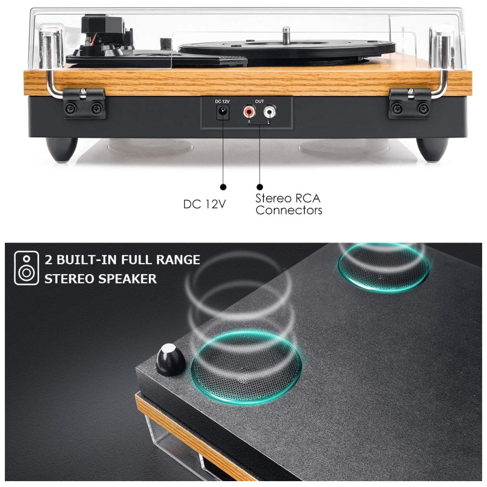 2 alto falantes estéreo de faixa total integrados produzam um som nítido e quente com clareza impressionante Projeto anti ressonância exclusivo por meio de 3 plugues elásticos plantados sob o prato para minimizar a vibração
