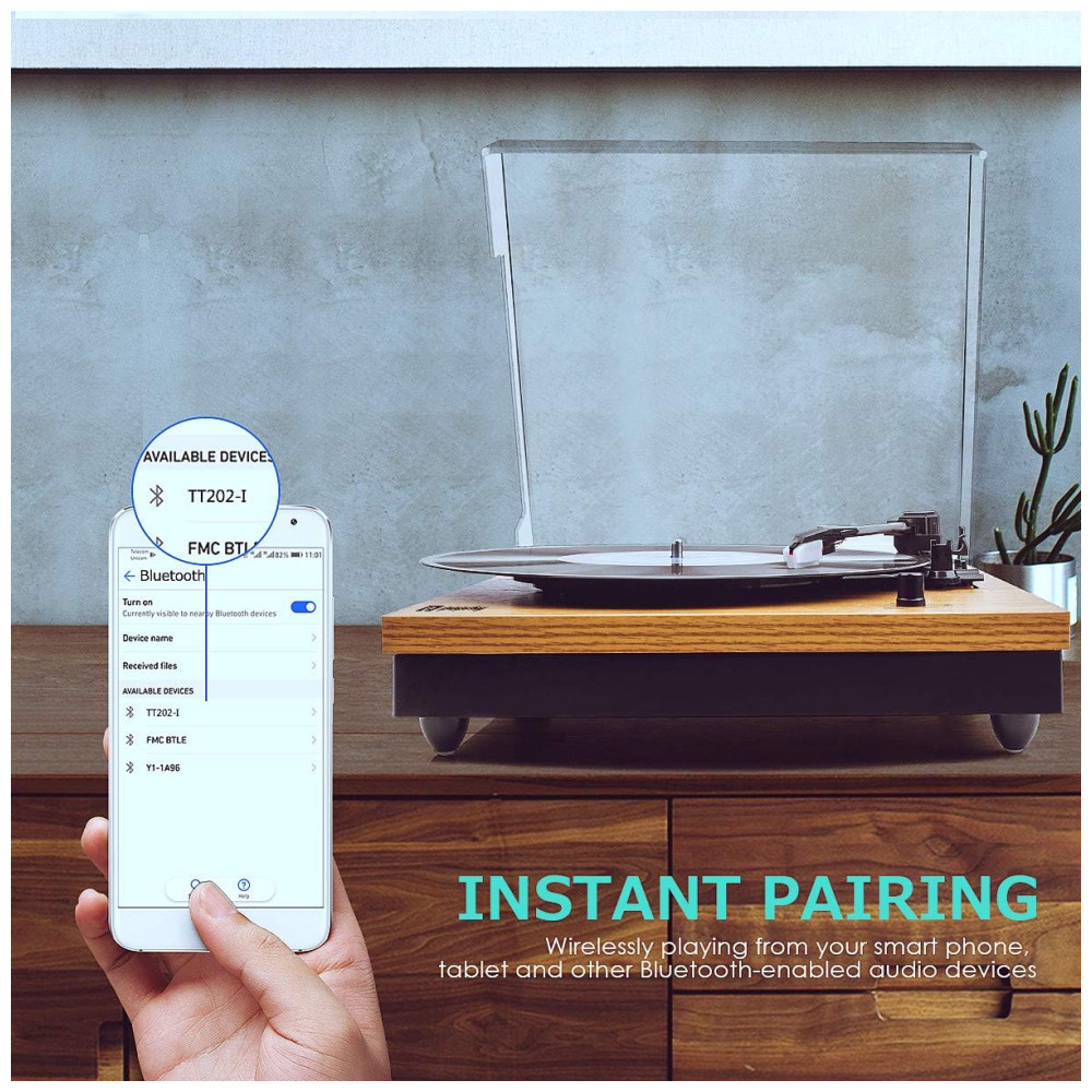 A função Bluetooth permite a reprodução sem fio a partir de um smartphone e tablet Jack RCA para conectar outro alto falante