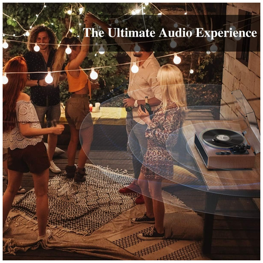 Transmissão sem fio, emparelhe e reproduza música de todos os seus dispositivos favoritos, como smartphones iPhone e Android, tablets, PCs, reprodutores de mp3 USB através dos alto falantes do toca discos usando conexão sem fio