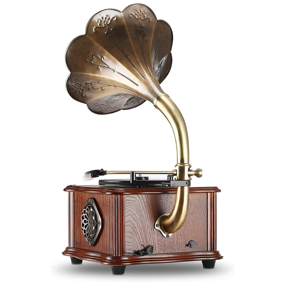 Vitrola Toca Discos Gramofone com Corneta de Cobre e Alto falante Embutido LUGULAKE TN03 Marrom