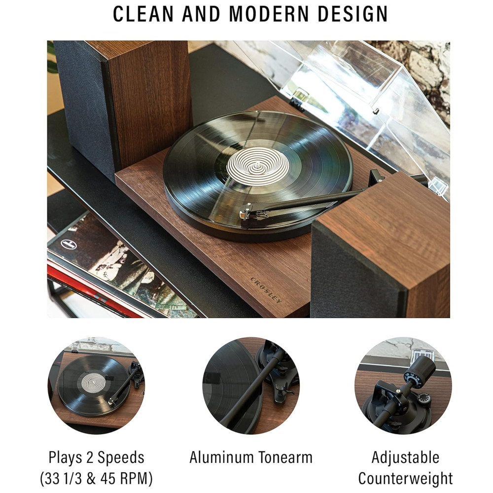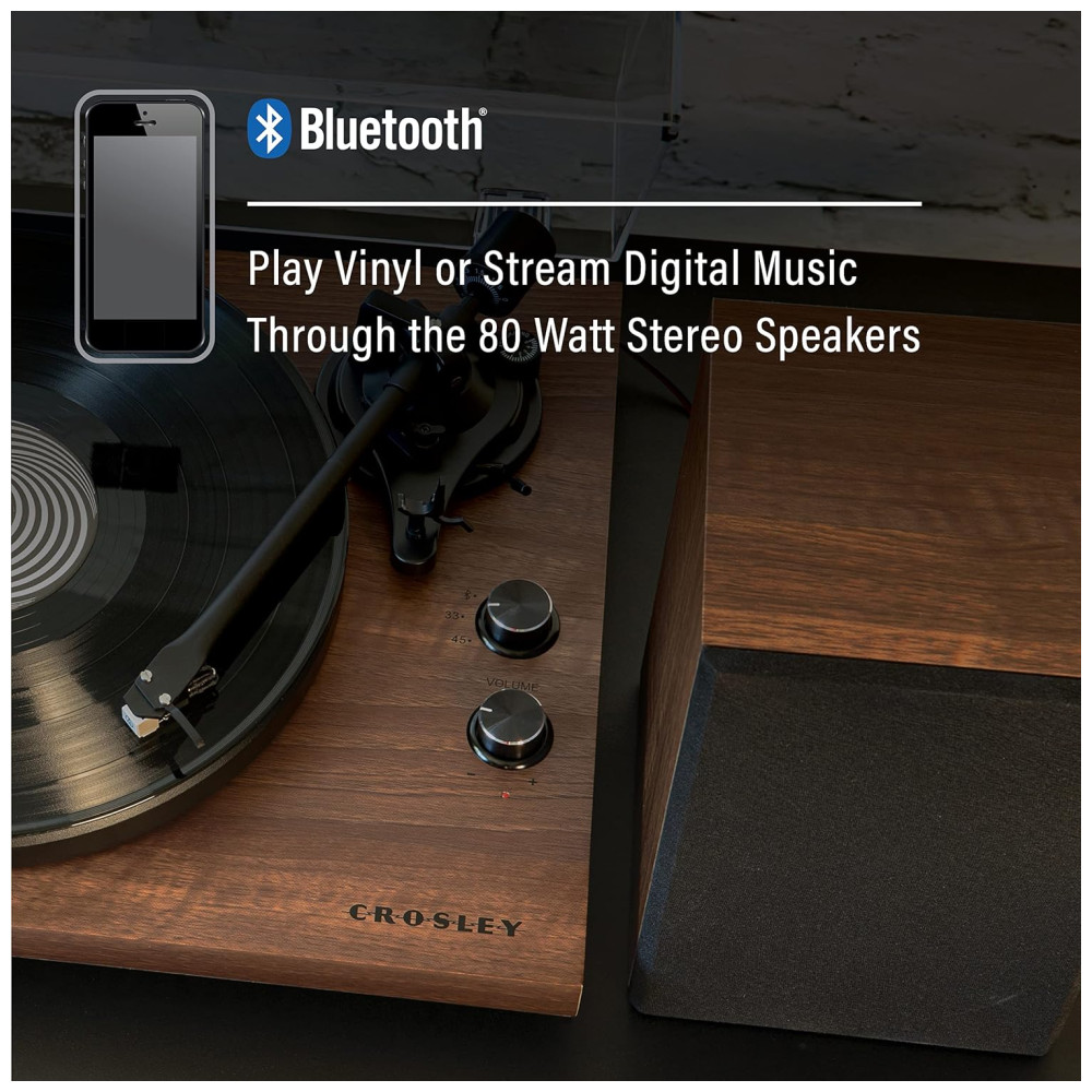 Vitrola Toca-Discos HiFi com Alto-Falantes Braço Ajustável Cápsula de Ímã Móvel Receptor Bluetooth C62C Crosley Madeira