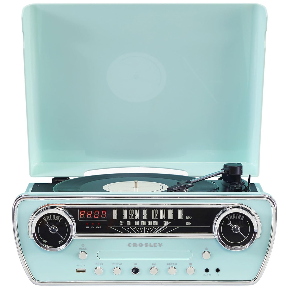 Vitrola Toca-Discos Powel 7 em 1 Bluetooth com Rádio AM/FM CD Player e Aux-in CR6047A-AB Crosley Azul Aqua