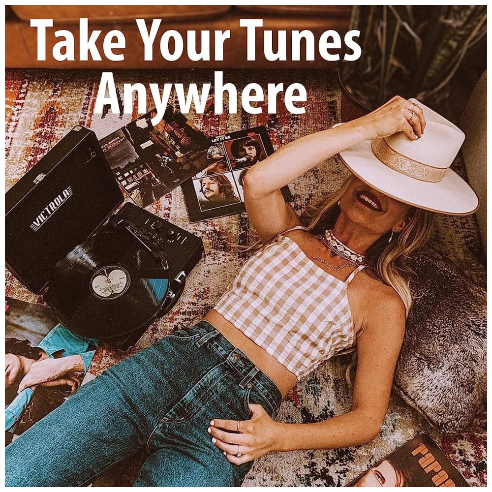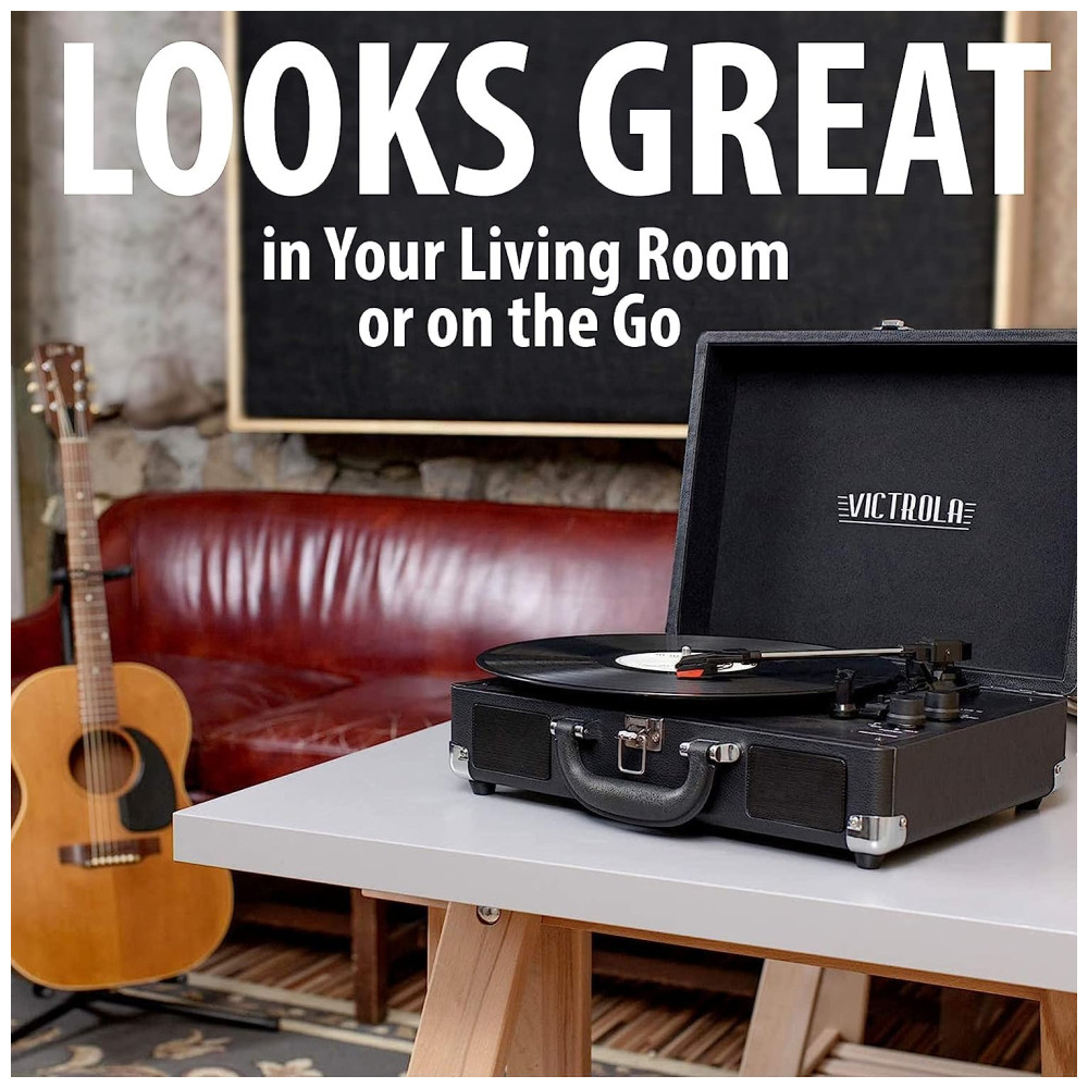 LEVE SUAS MÚSICAS PARA QUALQUER LUGAR Alojado em uma mala vintage com uma alça de transporte fácil, a mistura de design retrô e contemporâneo da Victrola oferece a máxima flexibilidade para ouvir música onde você quiser e como quiser uma ótima opção para os amantes de vinil