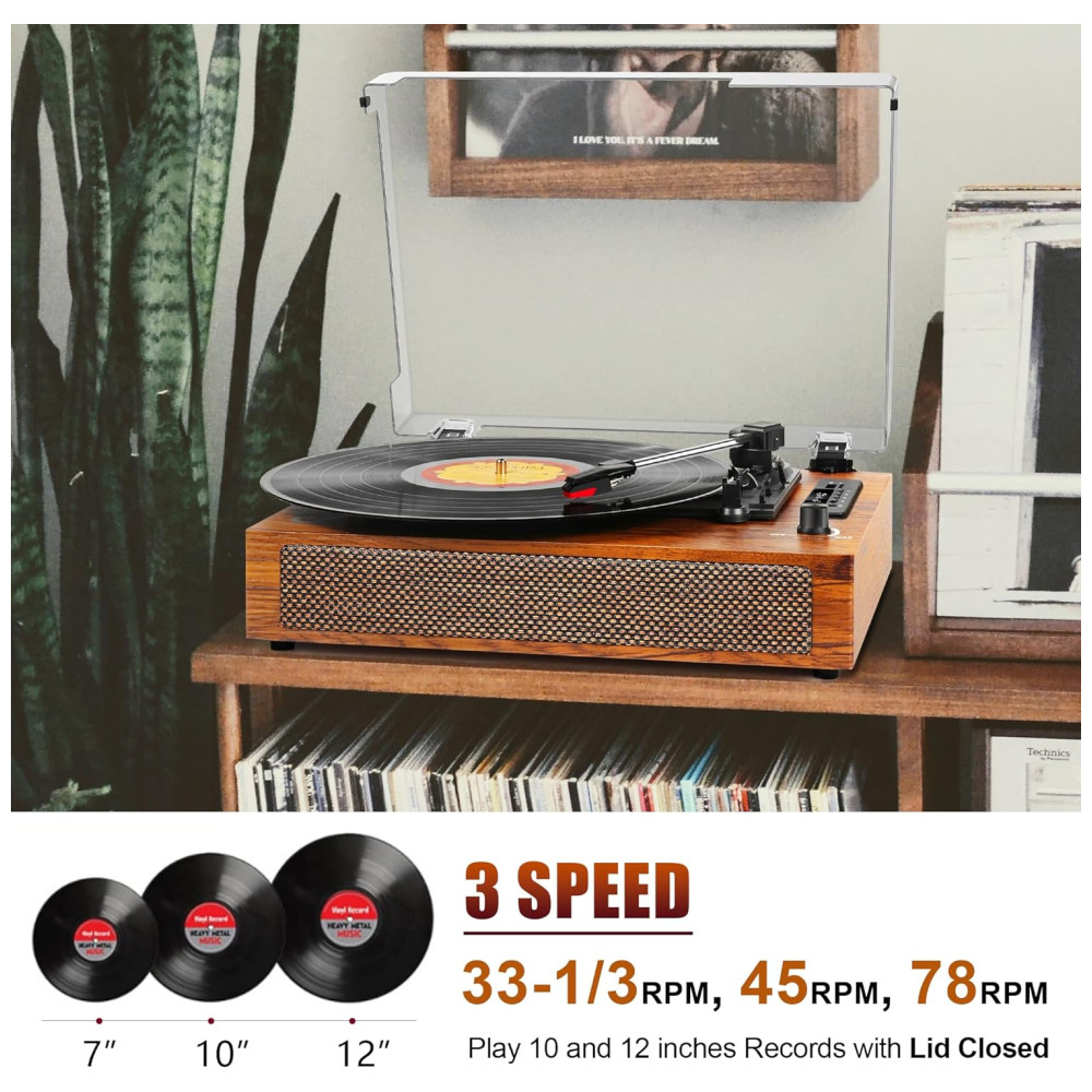 3 Velocidades para Gravação de 3 Tamanhos Os toca discos possuem 3 velocidades ajustáveis 33, 45, 78RPM para todos os discos de vinil 71012. Ligue a função de parada automática, o prato para automaticamente no final de um disco, para não danificar seus discos e caneta.