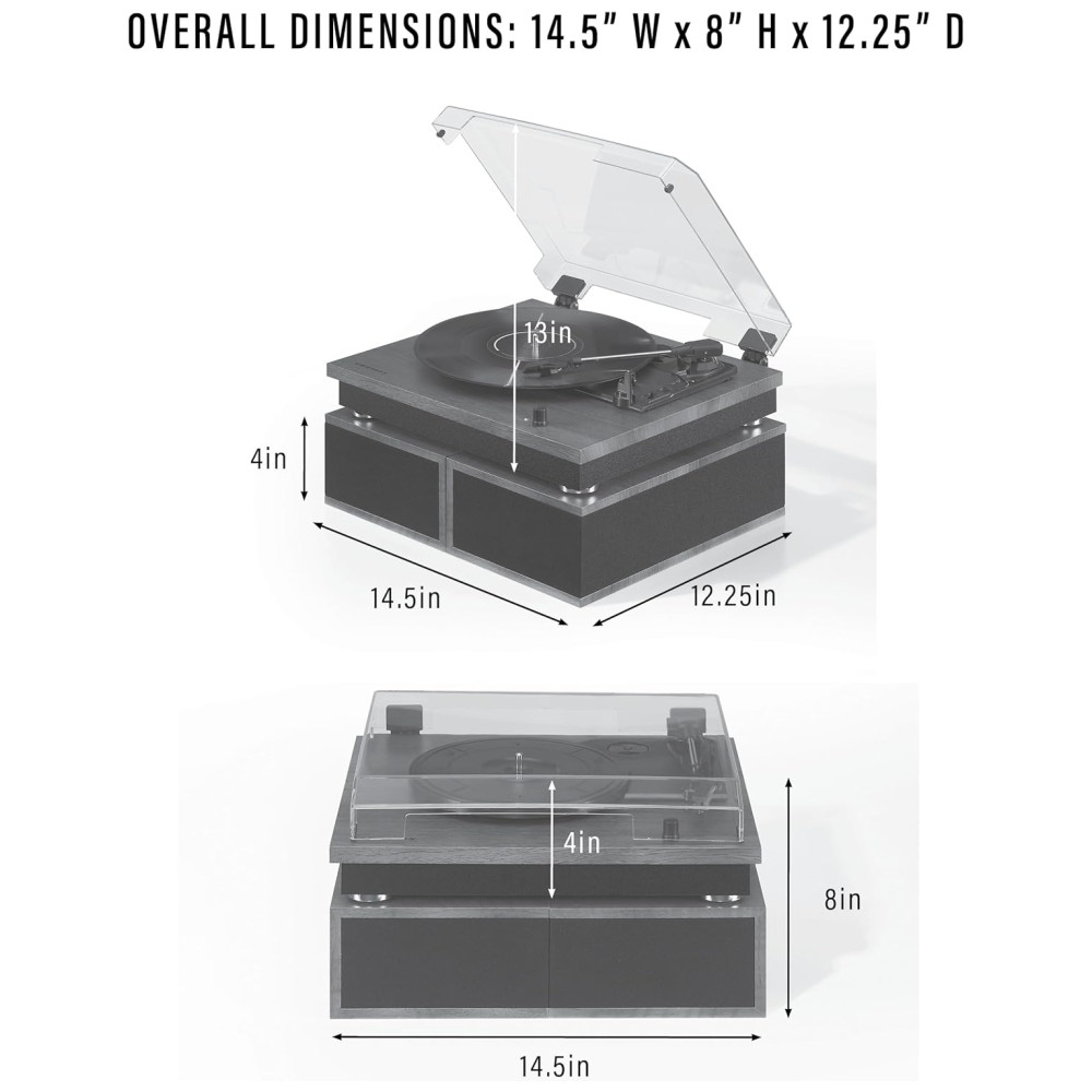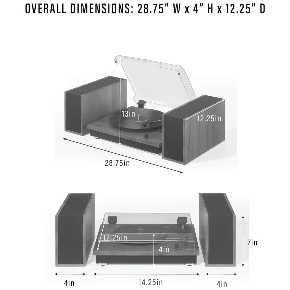 Componentes incluídos Garantia limitada do fabricante de 1 ano, adaptador de energia, 2 alto falantes, 2,43 metros, toca discos com tampa, adaptador de 45 RPM Ver mais