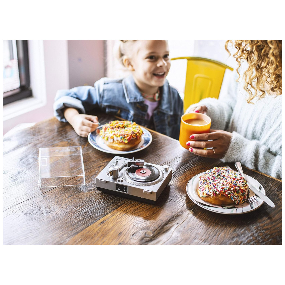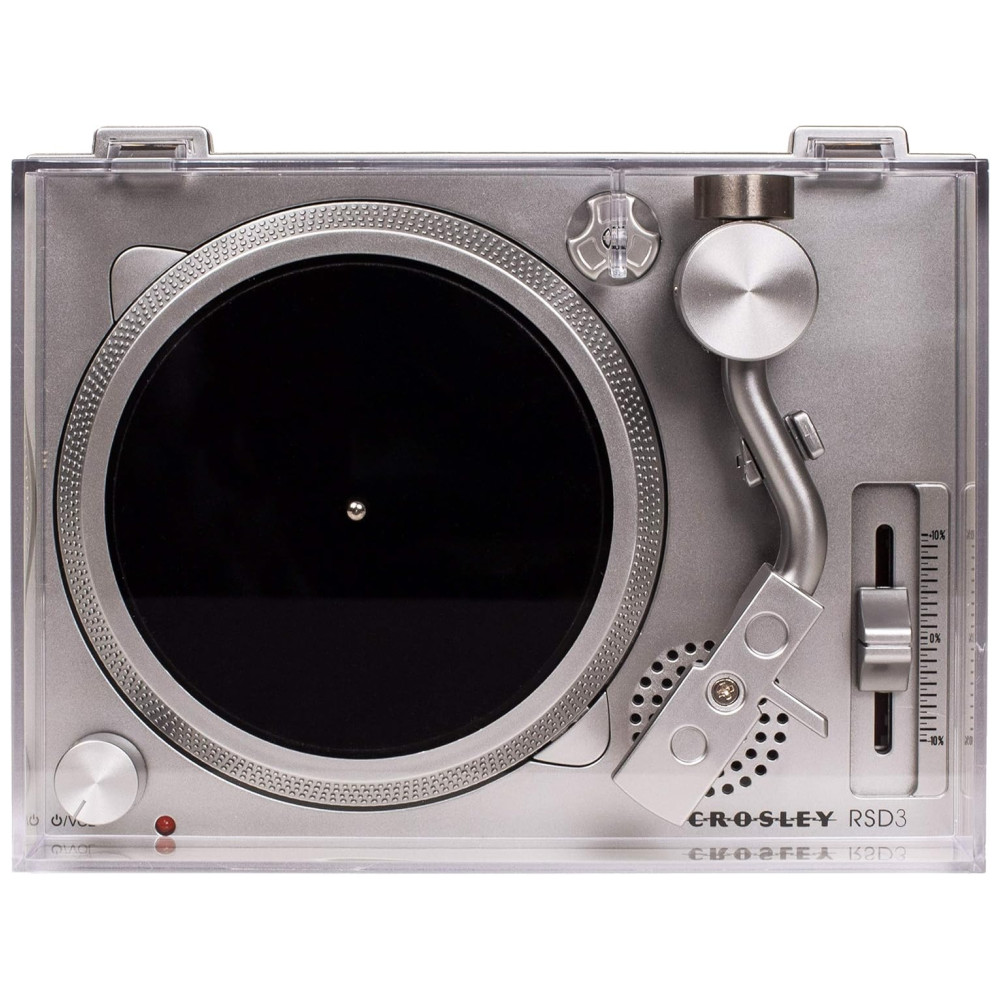 O Crosley Mini Turntable é uma vitrola/ toca discos beltdrive projetado para discos de vinil colecionáveis. Esses discos foram lançados no Japão no início dos anos 2000 e ressuscitados recentemente pelo Record Store Day em colaboração com a Crosley. O RSD3 tem muitos recursos, como o cartucho de ímã móvel AT3600, controle de pitch ajustável, prato totalmente suportado e porta de saída auxiliar com adaptador RCA. Ele também possui um alto falante embutido e pode ser conectado a alto falantes maiores através da saída auxiliar e do adaptador de cabo RCA incluídos. O toca discos vem com dois adaptadores de poste grande de vinil, capa protetora transparente contra poeira, cabo auxiliar, adaptador AUX para RCA e cabo de carregamento USB para Mini USB. Além disso, o Record Store Day e a Crosley lançarão mais 3 discos em 2019 e depois.