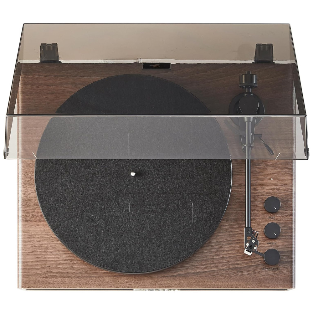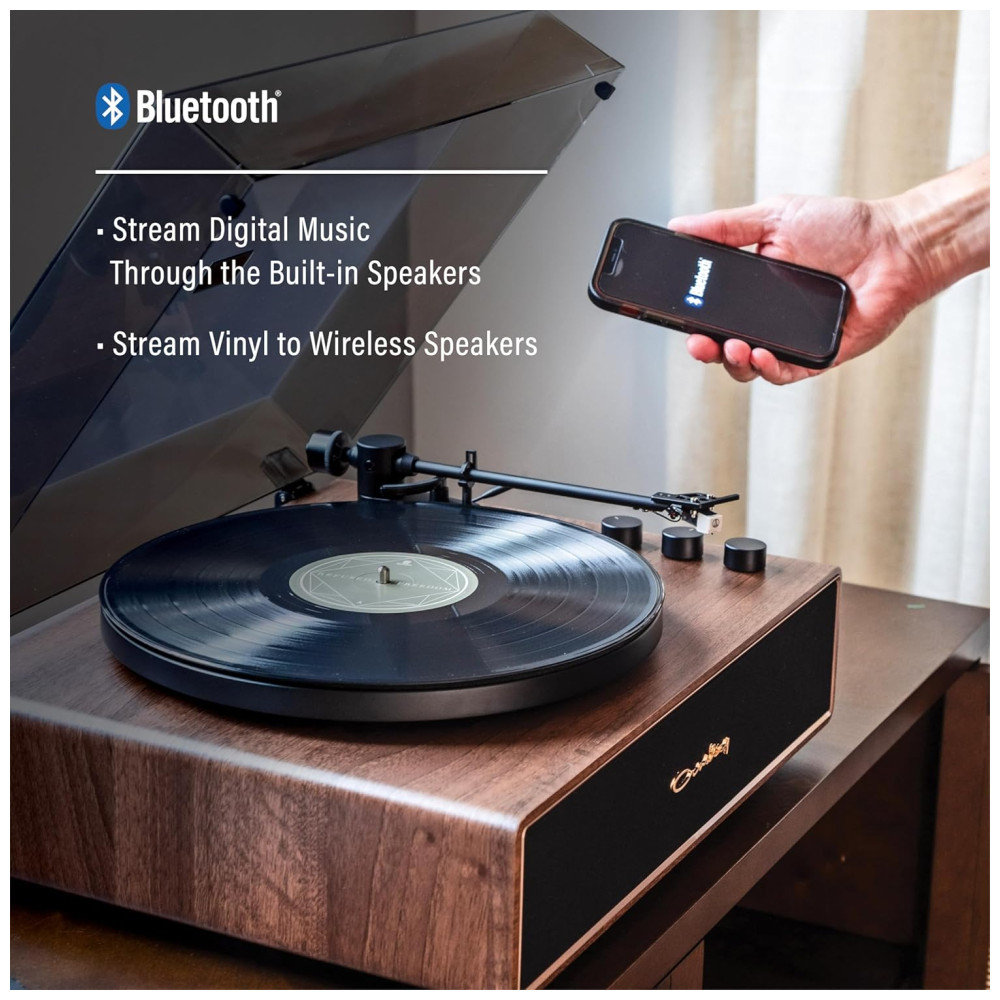 Este toca discos também possui conectividade Bluetooth, permitindo que você reproduza facilmente seus álbuns por meio de alto falantes sem fio ou transmita sua música para os toca discos de vinil com alto falantes estéreo fullrange integrados. Se o seu sistema estéreo atual for bom demais para ser ignorado, você pode usar o pré amplificador comutável integrado para conectar. Uma entrada auxiliar também está incluída para conectar outros dispositivos externos.