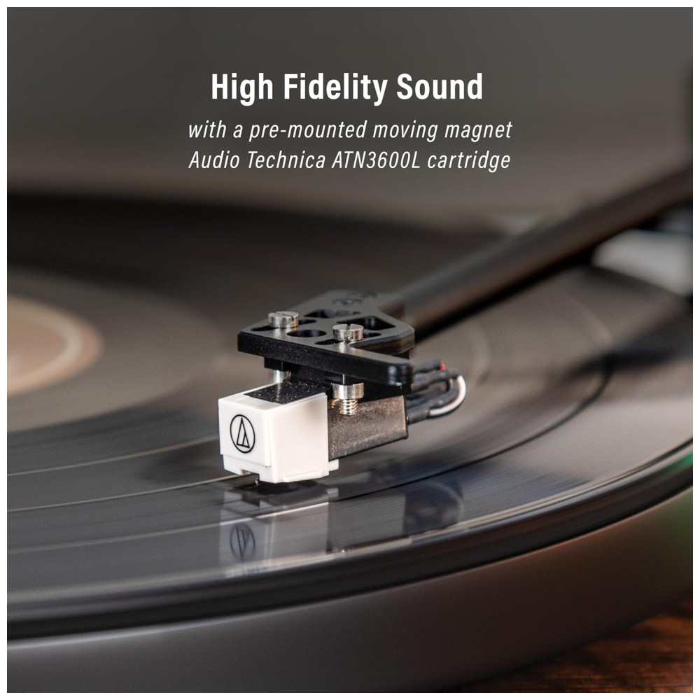 Os componentes de alta qualidade incluem um braço de fibra de carbono com alavanca de sinalização para reduzir a vibração, enquanto o contrapeso ajustável garante pressão precisa da agulha. Com uma montagem padrão, é possível atualizar facilmente o cartucho AudioTechnica ATN3600L de ímã móvel pré montado.
