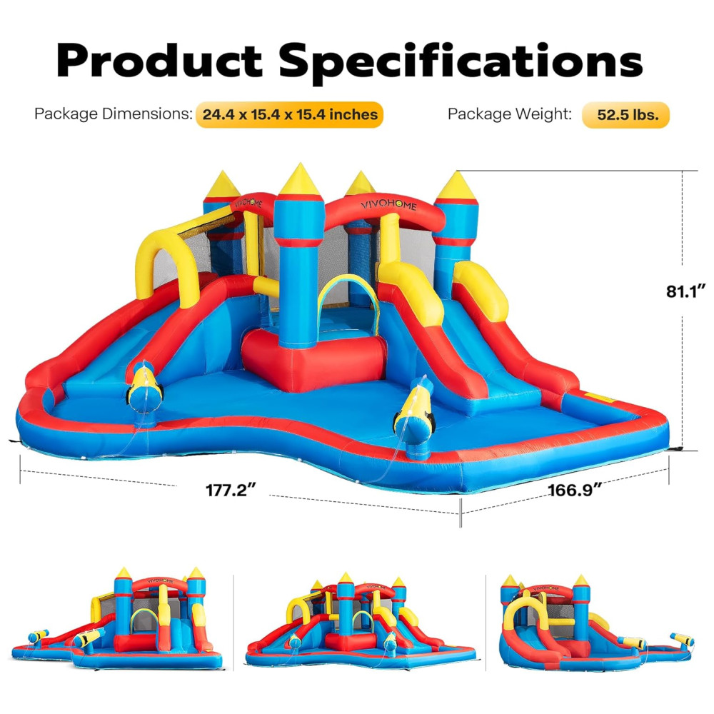 VIVOHOME Parque Aquático Inflável com Piscina Gigante e Escorregador – 457×426 m – Diversão Garantida para Crianças no Quintal