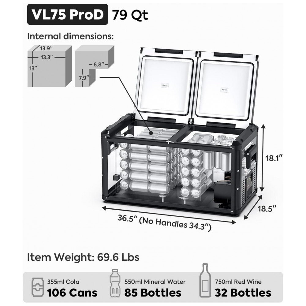 VL Geladeira Cooler Elétrico 76L Portátil Automotivo com Controle de Temperatura 12 24V Bilvolt AC ICECO Preto
