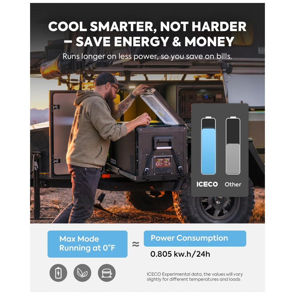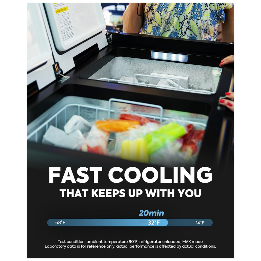 Compressor SECOP Faixa de resfriamento de 0 F a 50 F 18 10 para atender a todas as suas necessidades de congelamento ou refrigeração. Modo MAX para resfriamento rápido e modo ECO para economia de energia. A tecnologia de ponta torna possível trabalhar de forma estável, mesmo com uma inclinação de 40
