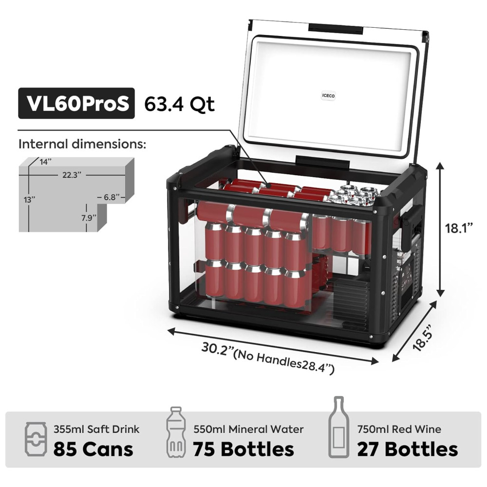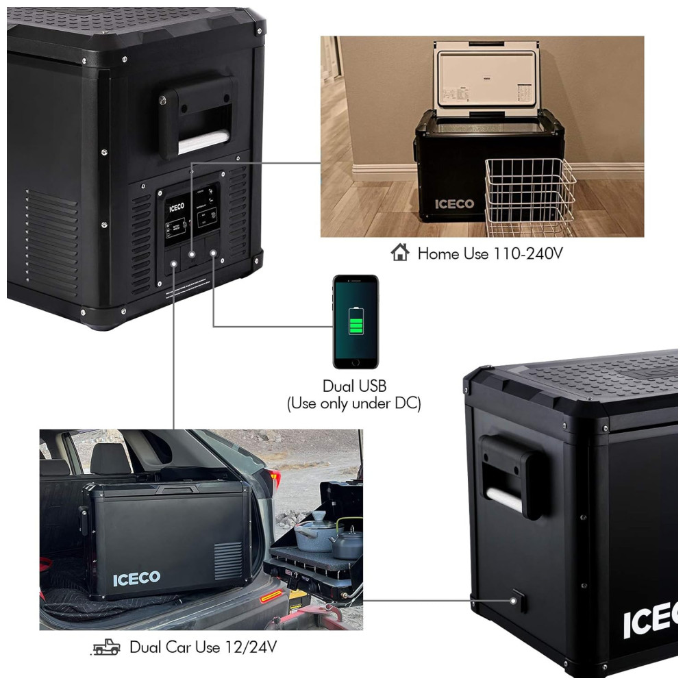 VL60 Cooler Geladeira Elétrica Automotiva 60L Portátil 12 24V DC 110 240V AC ICECO Preto