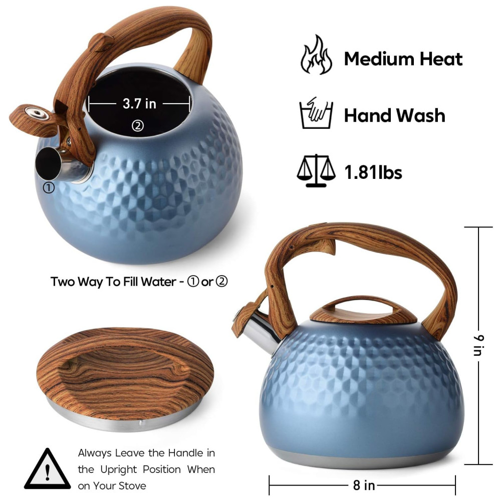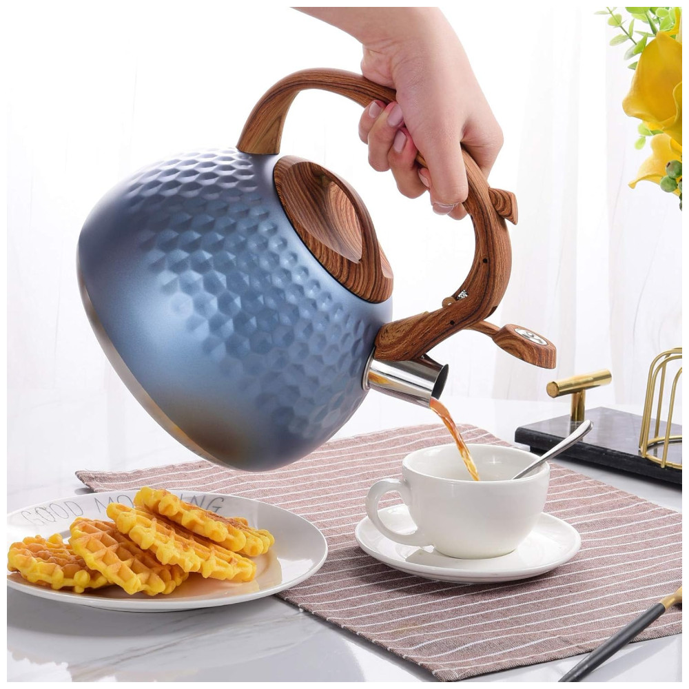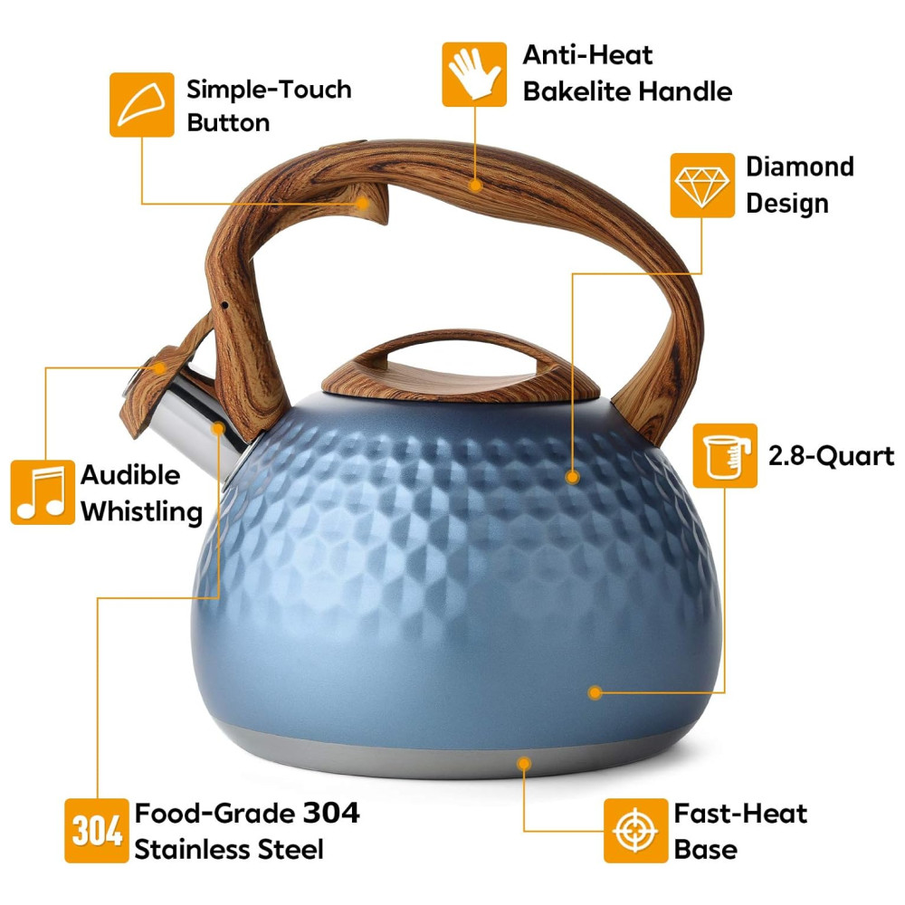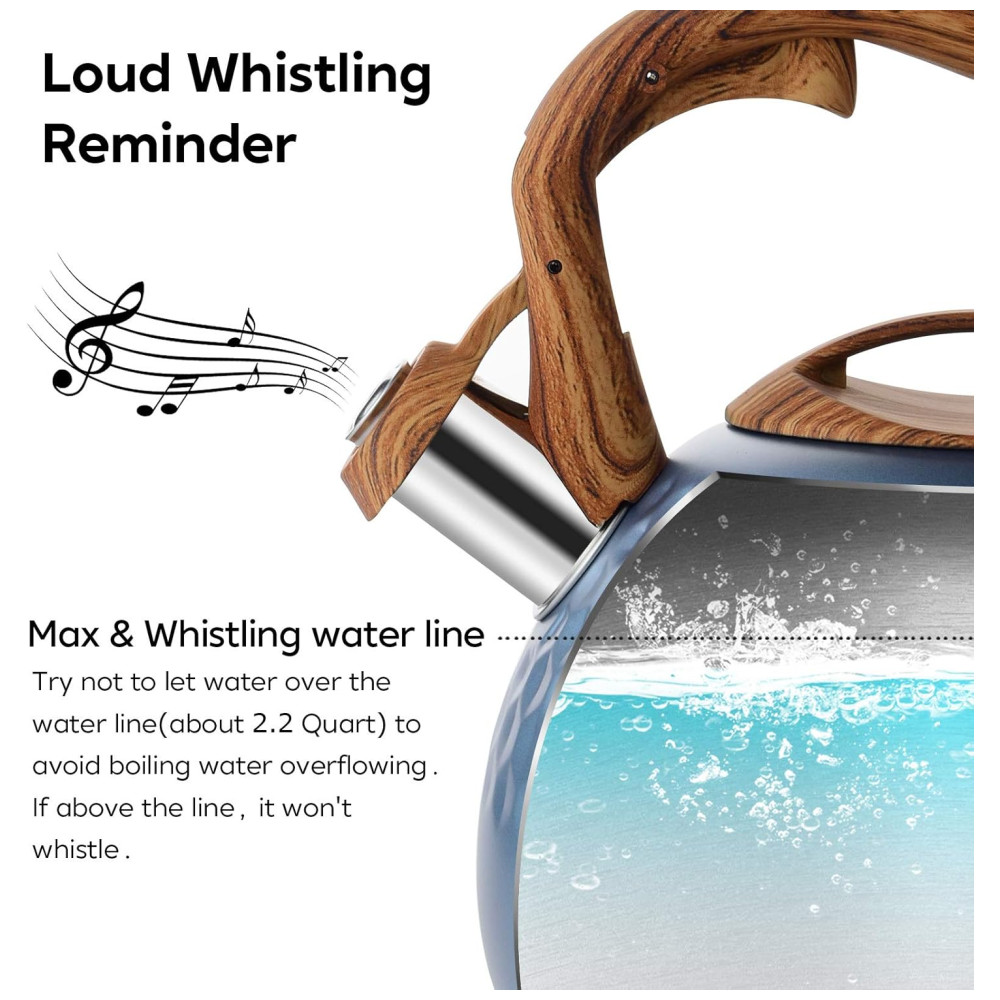 VONIKI Chaleira 2L com Apito e Cabo ergonômico Aço Inoxidável Azul