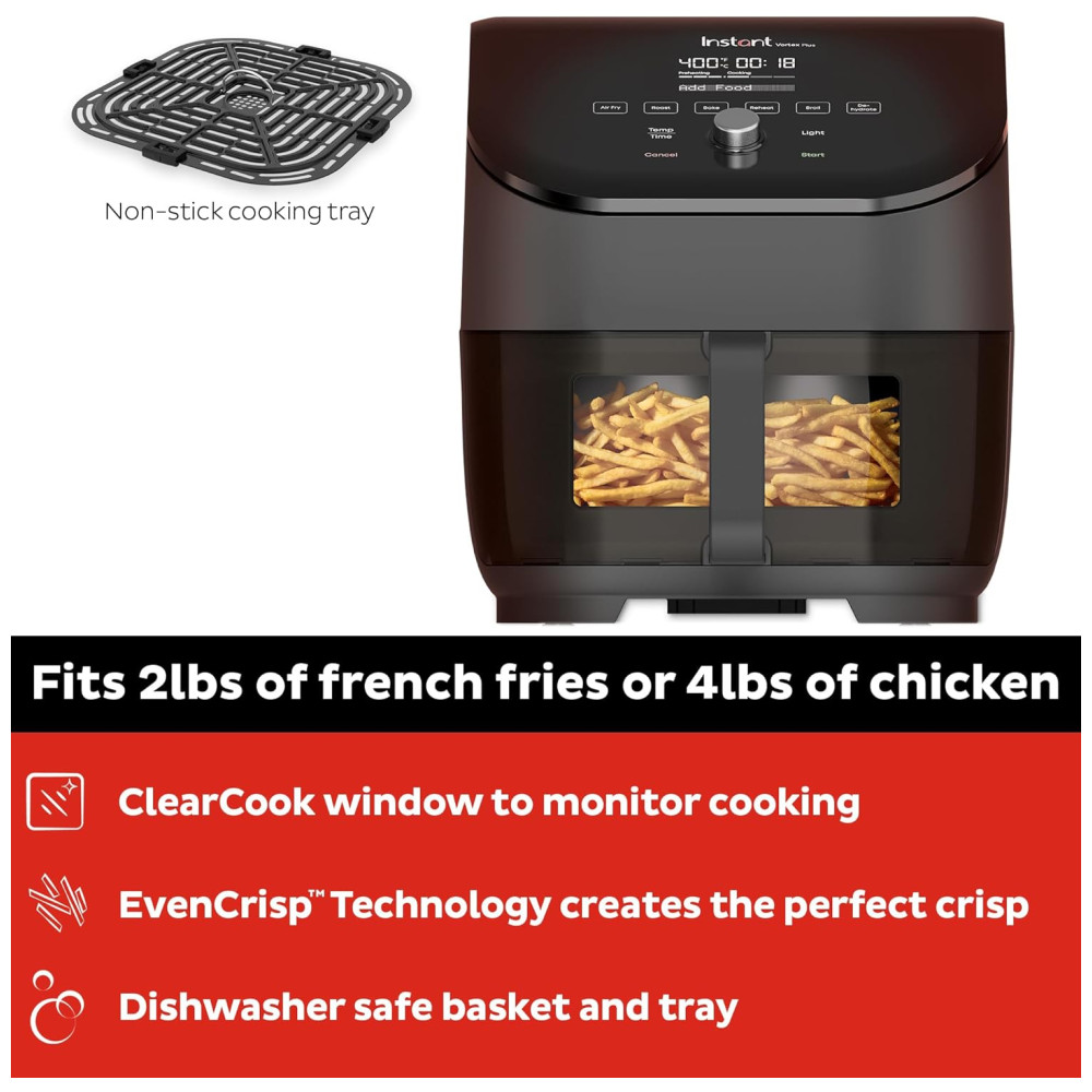Vortex Plus Fritadeira Elétrica AirFryer 6L Multifuncional 6 em 1 com Painel Digital 1700W 110v INSTANT POT 140 3088 01 Preto
