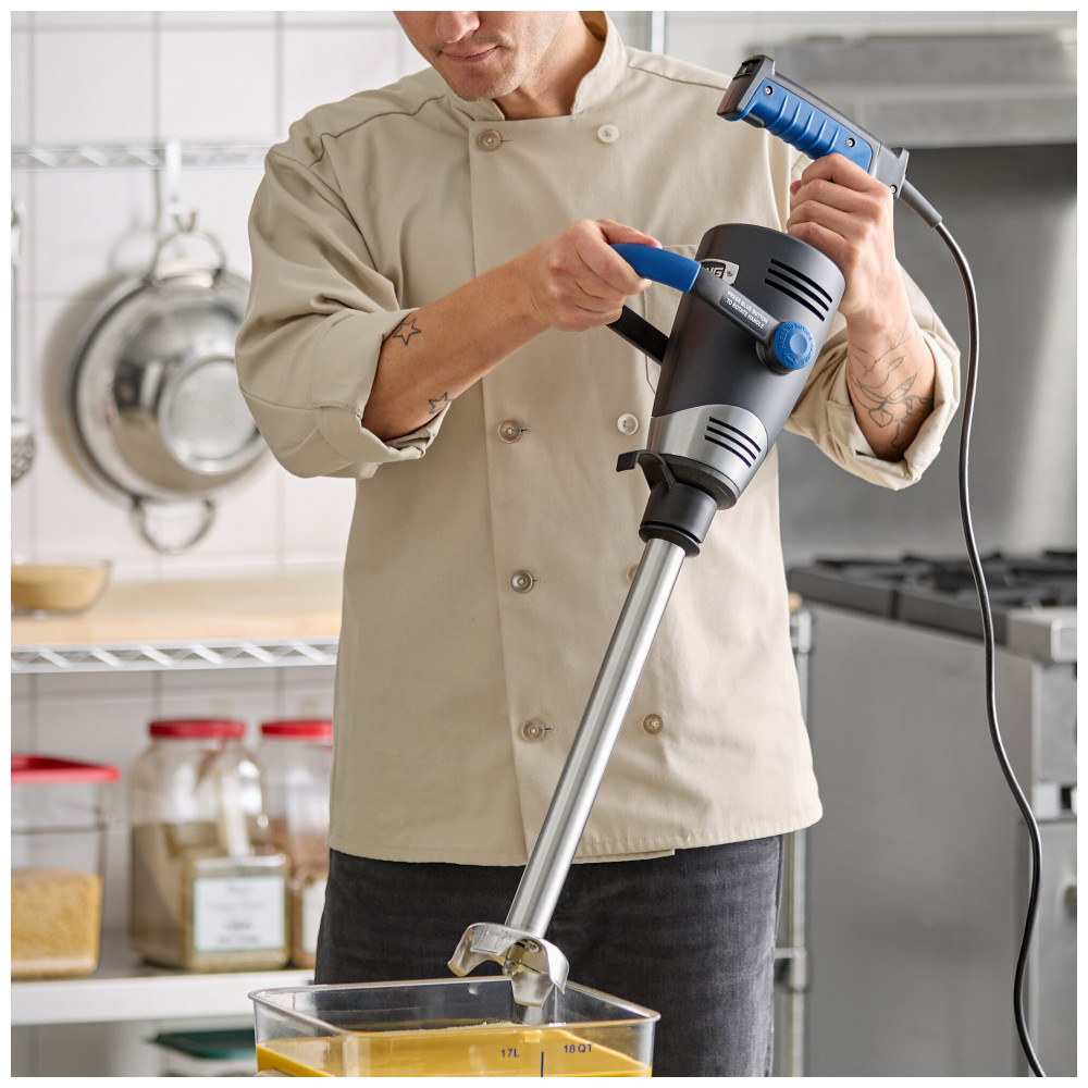 Transforme suas criações culinárias com o eixo de mistura Big Stik EvolutionX da Waring, feito em aço inoxidável resistente e com 40 cm de comprimento. Compatível com os modelos WSB500X, WSB550X, WSB600X, WSB650X e WSB700X, este eixo é uma substituição direta para a peça original do modelo WSB600X. Com um design intercambiável prático, permite mudanças rápidas de tamanho para ajustar a capacidade da sua unidade, proporcionando mistura uniforme, controle excepcional e grande capacidade para restaurantes, cozinhas industriais, cozinhas de preparação e pequenas operações alimentícias. Com capacidade para até 95 litros (aproximadamente 25 galões), é ideal para misturar, purê, emulsificar e liquidificar uma variedade de ingredientes com eficiência e rapidez. Possui lâmina dupla versátil em aço inoxidável, projetada para ser removível e selada, garantindo limpeza rápida e completa. Prepare cremes suaves, pastas, molhos, marinadas, sopas, ensopados e muito mais em segundos. Além disso, é perfeito para preparar purês de vegetais cozidos, mingaus e frutas, atendendo a dietas especiais. Compatível com os packs de potência Big Stik EvolutionX da Waring vendidos separadamente, é a escolha perfeita para uso profissional em operações comerciais.