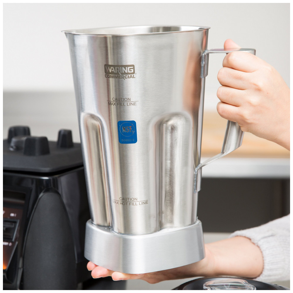 A jarra de liquidificador Waring 503346 é uma escolha ideal para estabelecimentos comerciais que precisam de desempenho e durabilidade. Com capacidade versátil de 1,9 litros (equivalente a 64 oz.), esta jarra permite preparar uma grande variedade de smoothies e bebidas misturadas para atender vários clientes simultaneamente. Feita em aço inoxidável resistente, ela é perfeita para cafeterias que produzem dezenas de bebidas diariamente, oferecendo alta durabilidade em comparação às jaras plásticas, que costumam riscar, embaçar e perder transparência com facilidade.