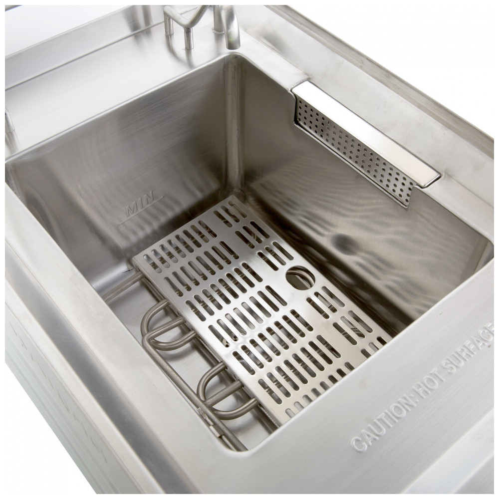Acelere sua preparação de massas com o Waring WPC100, um cozedor elétrico projetado para uso intenso e alto volume. Com um tanque em inox resistente e capacidade de 13,2 litros (3,5 galões), ele prepara até 1,8 kg (4 lb) de produtos congelados ou frescos em apenas minutos, ideal para atender rapidamente à demanda dos clientes. Seu pré-aquecimento é eficiente, atingindo ponto de ebulição em menos de 25 minutos, garantindo prontidão desde o início do dia. Para facilitar o manuseio, o conjunto inclui 2 cestos retangulares para preparações em grande volume e 4 cestos redondos, perfeitos para porcionar e cozinhar diferentes tipos de massas simultaneamente, como linguine, canelone, macarrão e orzo. A limpeza e manutenção são simplificadas graças aos elementos de aquecimento em aço inoxidável que evitam corrosão, além das válvulas de drenagem e reabastecimento frontais, acessíveis durante o uso. Com acabamento totalmente em aço inoxidável, este equipamento é ideal para cozinhas comerciais de alta intensidade. Requer conexão elétrica de 240V para operar com potência de 3600W.