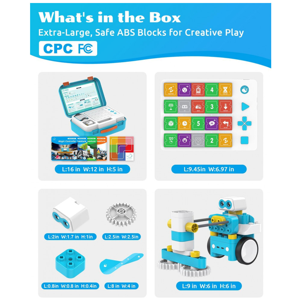 O WhalesBot C3 Pro é um kit 12‑em‑1 de robótica e codificação pensado como primeiro kit de programação para crianças de 4 a 6 anos, combinando blocos de montar, painel inteligente e cartas magnéticas de código em um sistema totalmente “screen‑free”. Ele permite tanto controlar o robô por controle remoto quanto programar sequências com cartas, trabalhando lógica de forma lúdica.