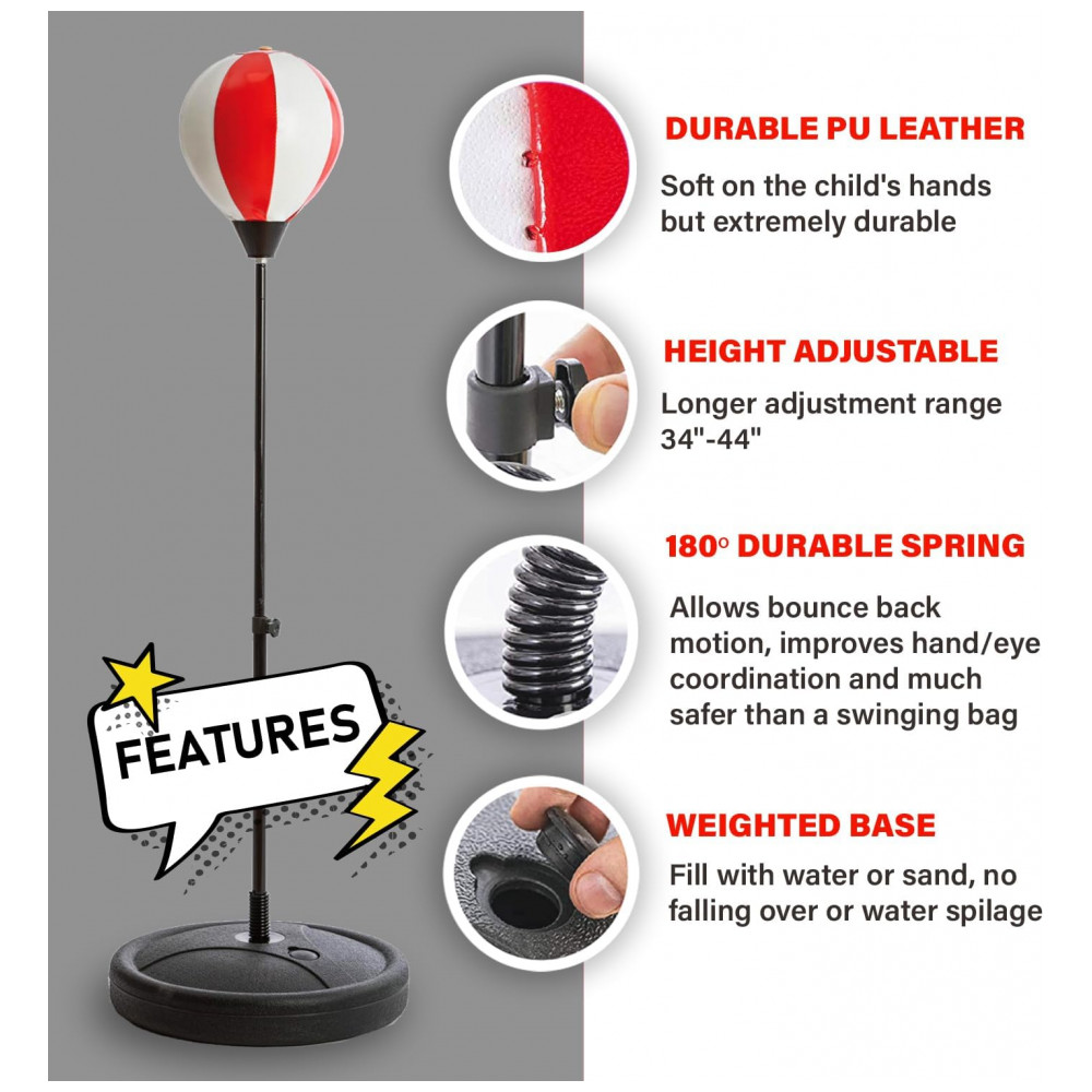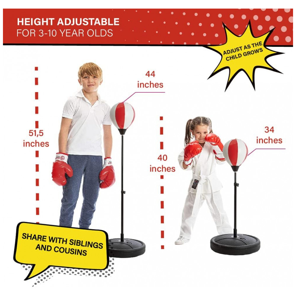 whoobli Kit de Saco de Pancada Infantil Ajustável com Luvas de Boxe – Brinquedo Esportivo para Crianças de 3 a 10 Anos Vermelho e Branco