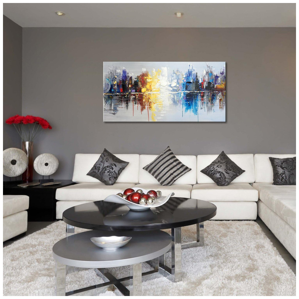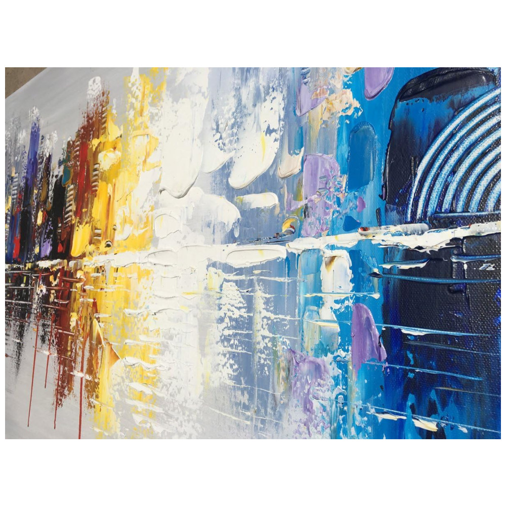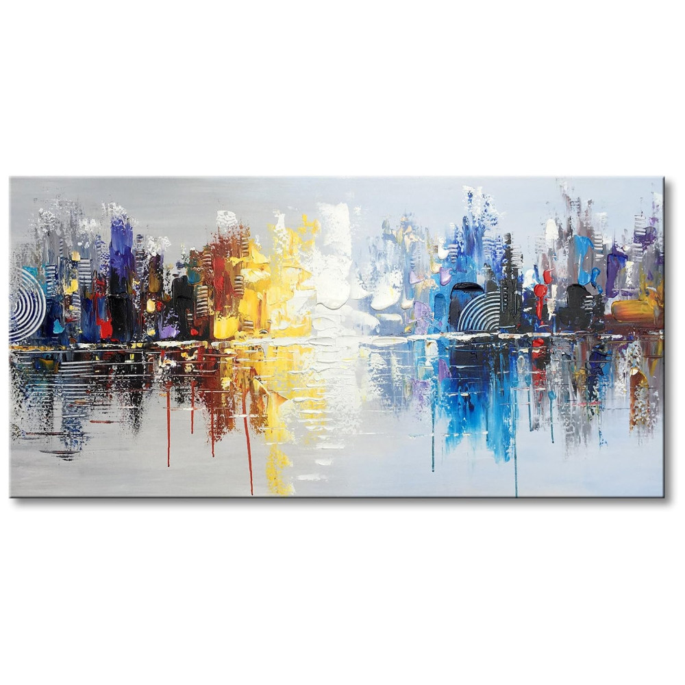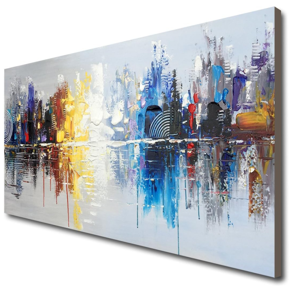 Pintado à mão, pintura a óleo da cidade sobre tela por nossos artistas profissionais. Esta é uma arte de parede de lona abstrata feita à mão, não é uma impressão em tela. Esta obra de arte texturizada de reflexão da paisagem urbana contemporânea é adequada para sala de estar, quarto, cozinha, escritório, hotel, sala de jantar, banheiro, bar, etc.