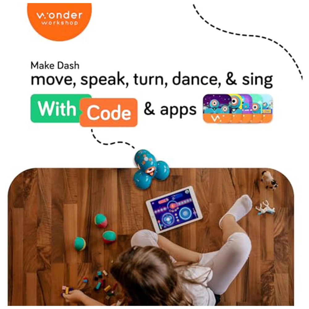 Wonder Workshop Dash Robô Programável com Kit de Acessórios Controle por App Sensor de Voz e STEM para Crianças 6 a 11 Anos azul