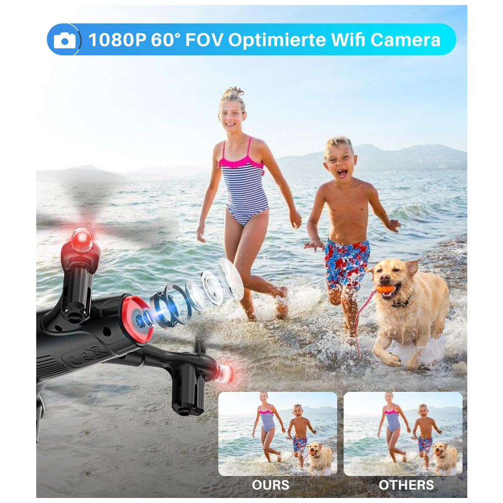 Câmera 720P e Transmissão WiFi RC Drone equipado com uma câmera HD 720P FPV, você pode facilmente capturar retratos e vídeos de alta resolução com ela. O modo FPV First Person View é útil para desfrutar de paisagens distantes. A transmissão WiFi em tempo real permite que você compartilhe instantaneamente belas fotos com familiares e amigos em plataformas sociais.