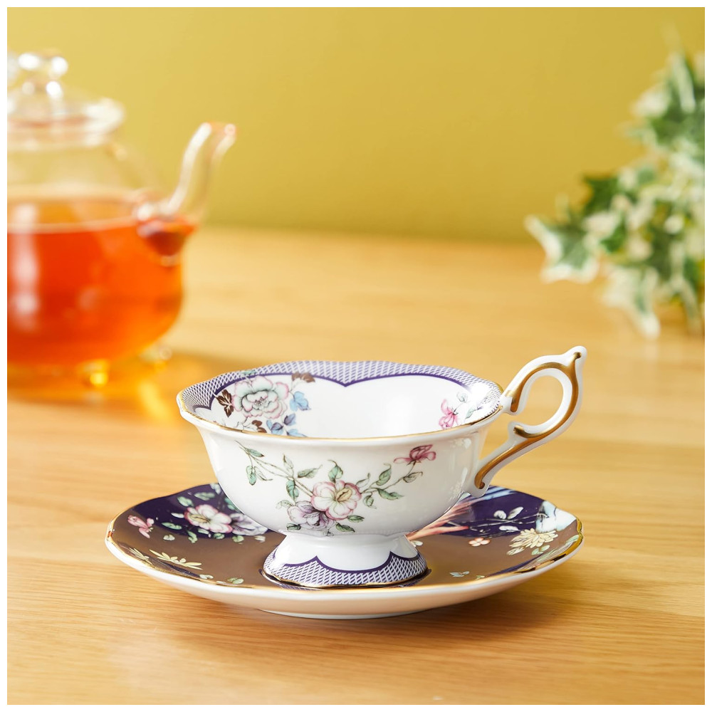 Xícara e Pires Elegância e Sofisticação em Sua Mesa com Capacidade de 150mL e Material de Porcelana Wedgwood 40024023 Branca e Roxa