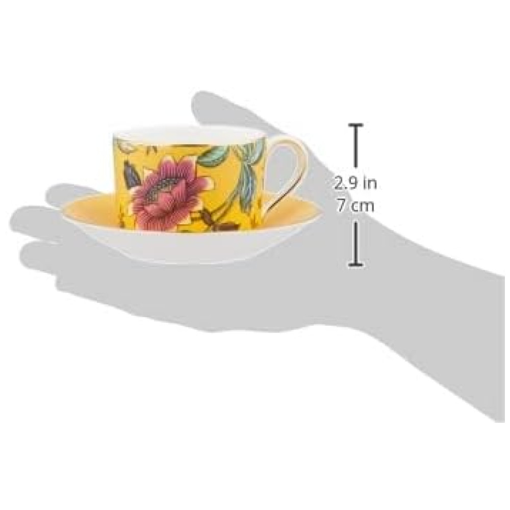 Xícara e Pires Elegância e Sofisticação em Sua Mesa com Capacidade de 150mL e Material de Porcelana Wedgwood Branco e Amarelo
