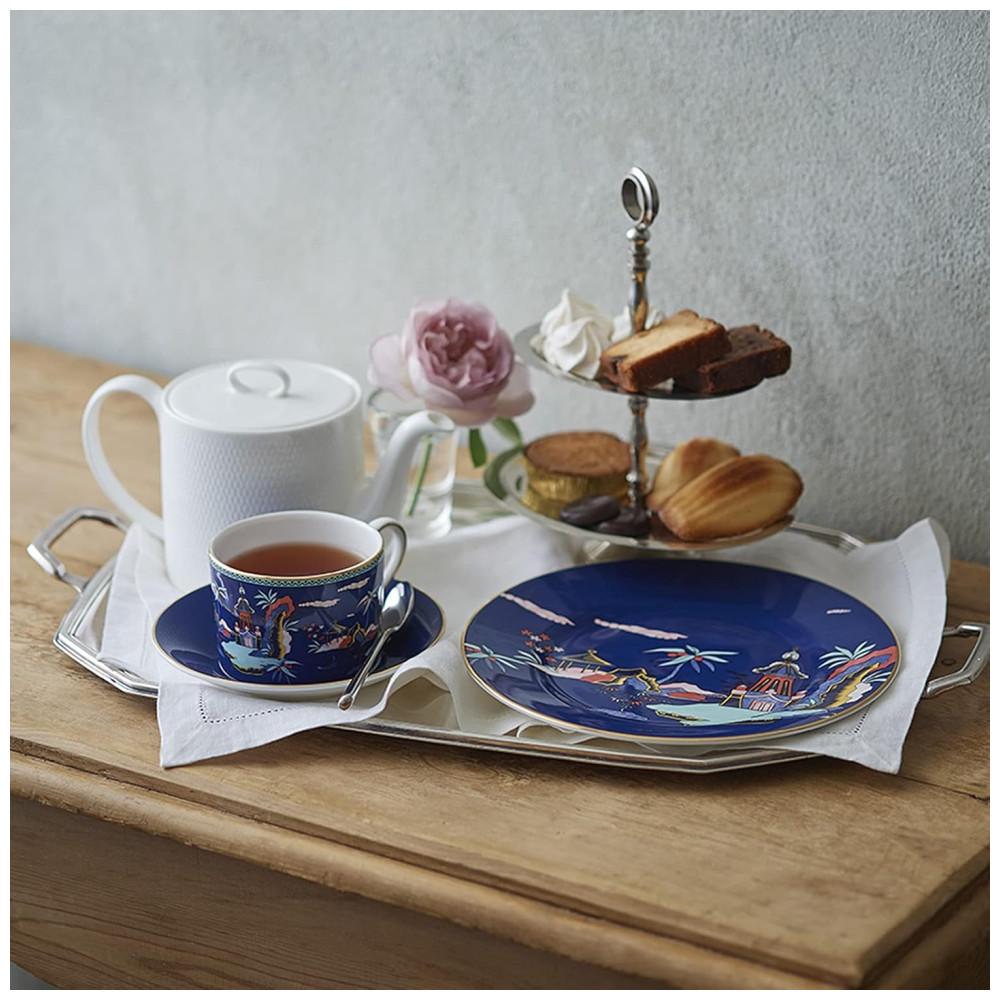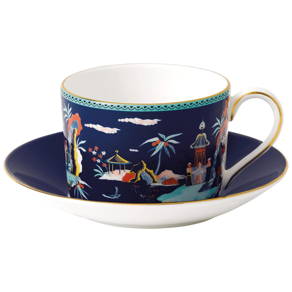 Descubra a coleção Wonderlust e embarque em uma viagem ao redor do mundo com presentes sofisticados, inspirados nas maravilhas de diferentes continentes. O conjunto de Xícaras e Pires de Chá Wonderlust Blue Pagoda é um exemplo perfeito, apresentando motivos orientais em um poderoso fundo azul marinho.