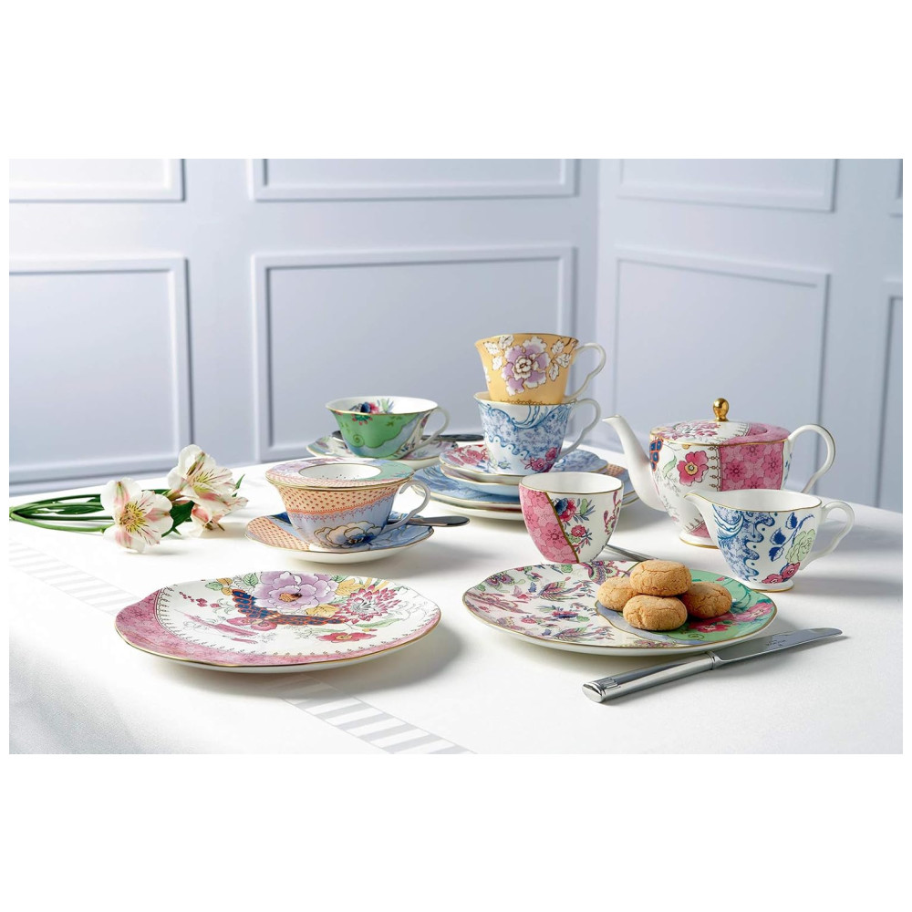 Butterfly Bloom é uma coleção de chá encantadora, com designs florais vintage inspirados nos padrões históricos dos arquivos da Wedgwood. A Xícara e Pires Butterfly Bloom Blue Peony são perfeitos tanto para momentos de tranquilidade quanto para encontros sociáveis com amigos, trazendo um toque de elegância e charme.