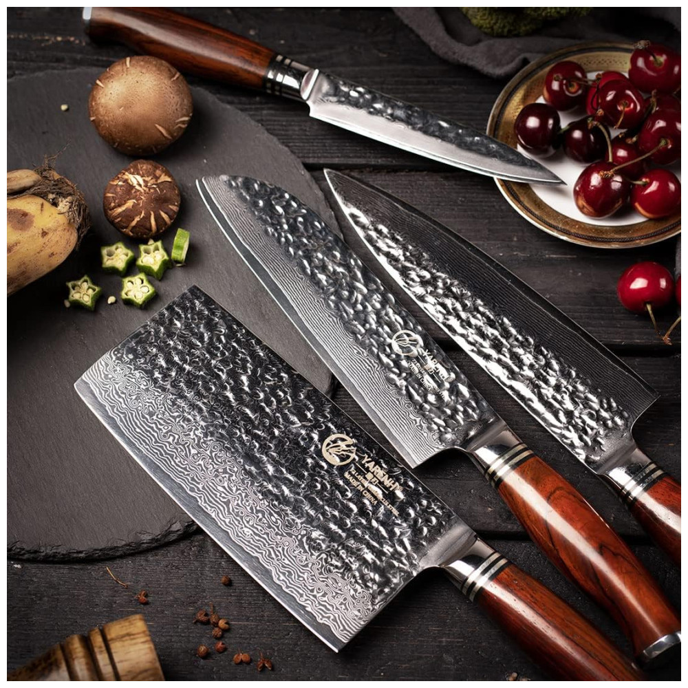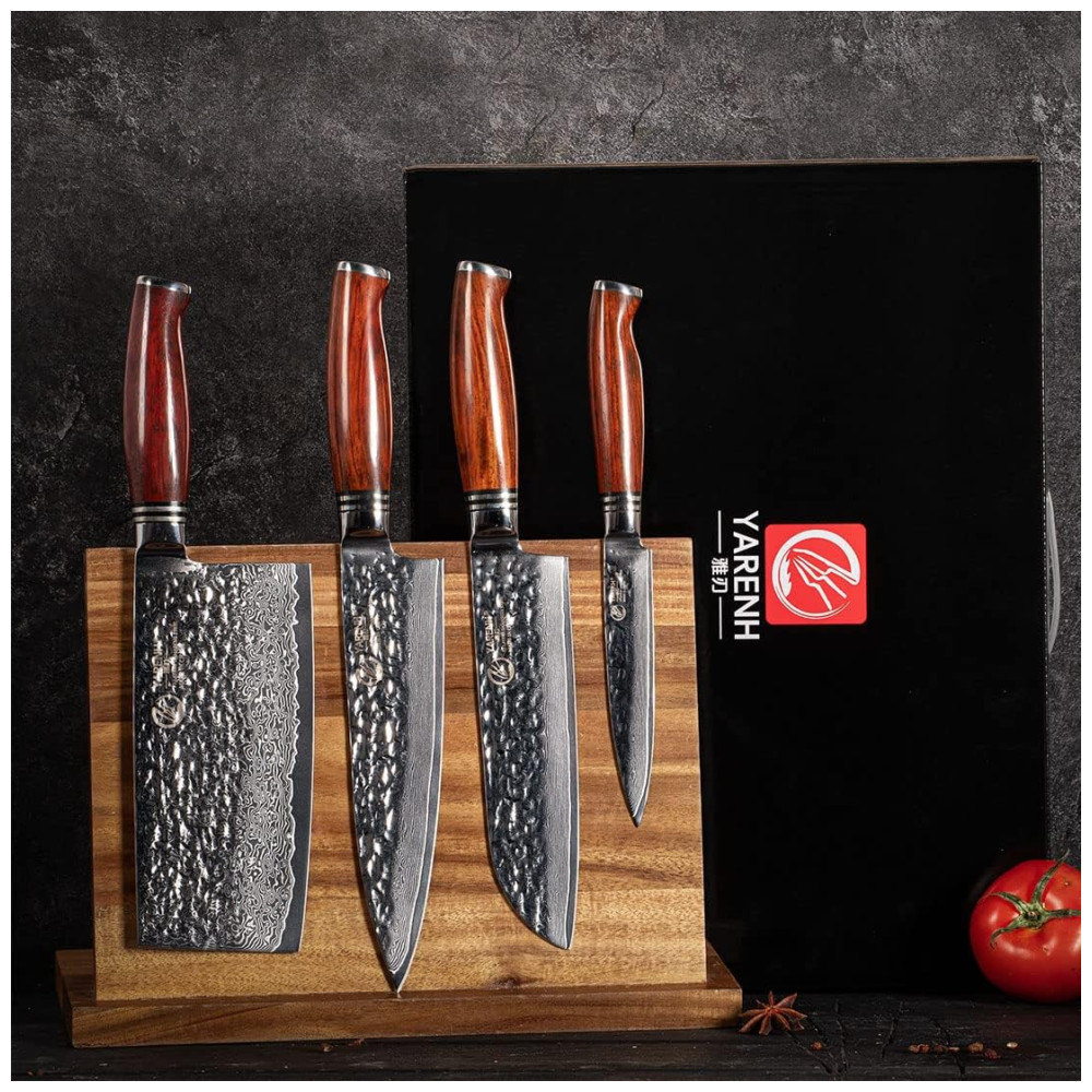 Desempenho de alto custo A faca Yarenh é feita com os melhores materiais do Japão e da Europa na mundialmente famosa Cutter City Yangjiang China. Ao usar materiais premium e um processo maduro de baixo custo, oferece aos clientes a faca de cozinha de aço damasco da mais alta qualidade a um preço atraente, proporcionando lhes uma experiência de corte sofisticada.