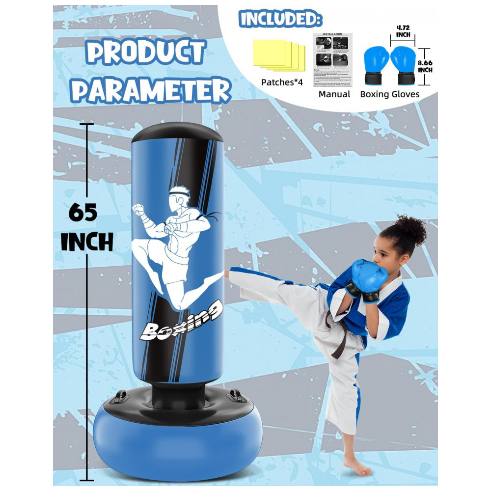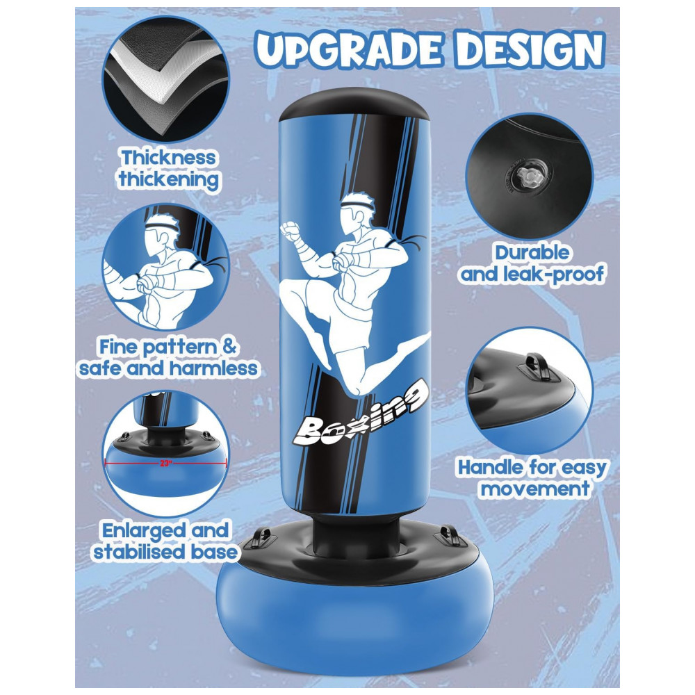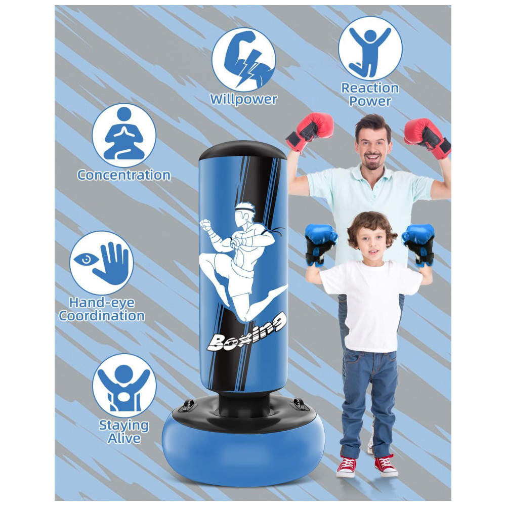 Saco de Pancadas Inflável Infantil YORWHIN 168 cm Azul com Luvas